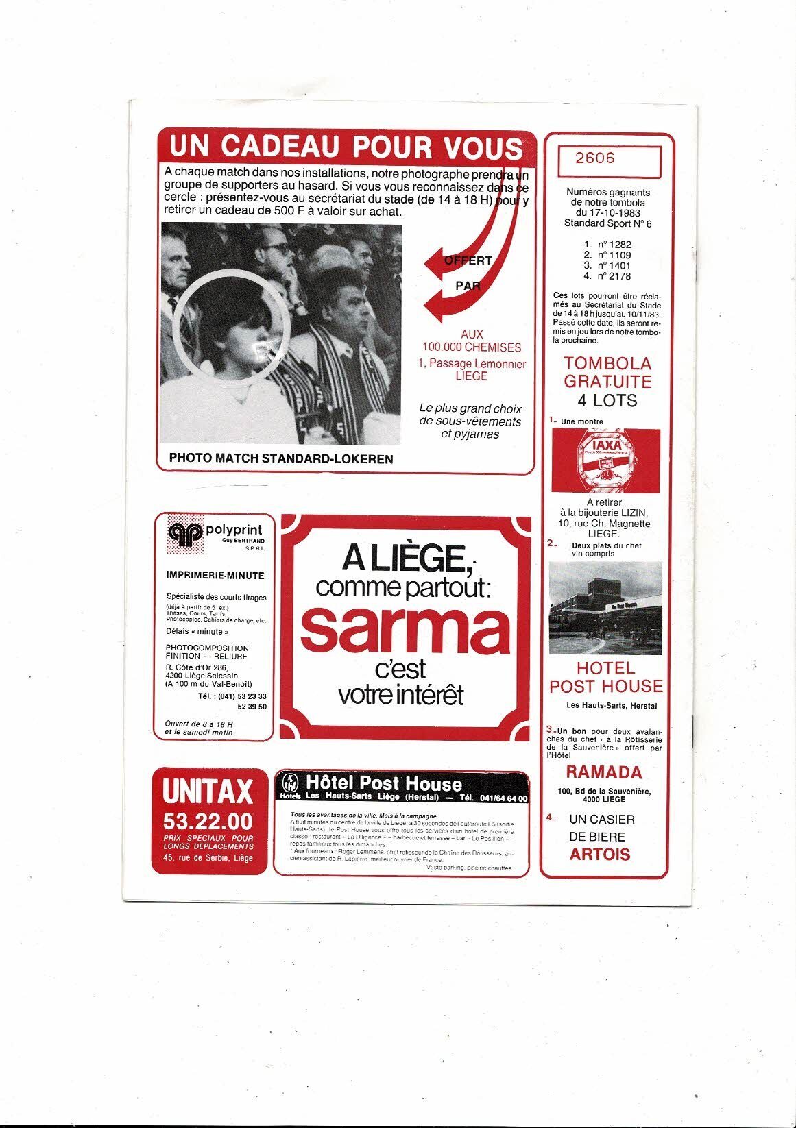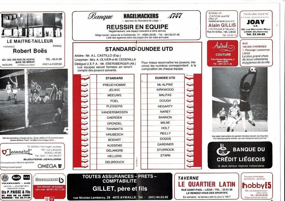 Standard Liege v Dundee United European Cup Football Programme 1983/84