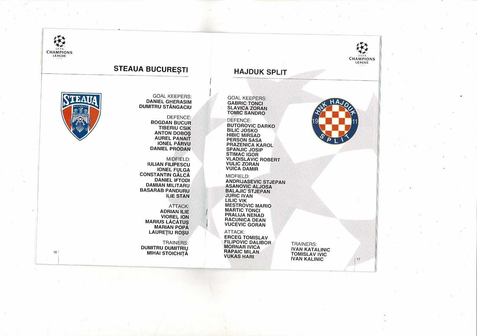 Steaua Bucharest v Hadjuk Split UEFA Champions League Football Programme 1994/95