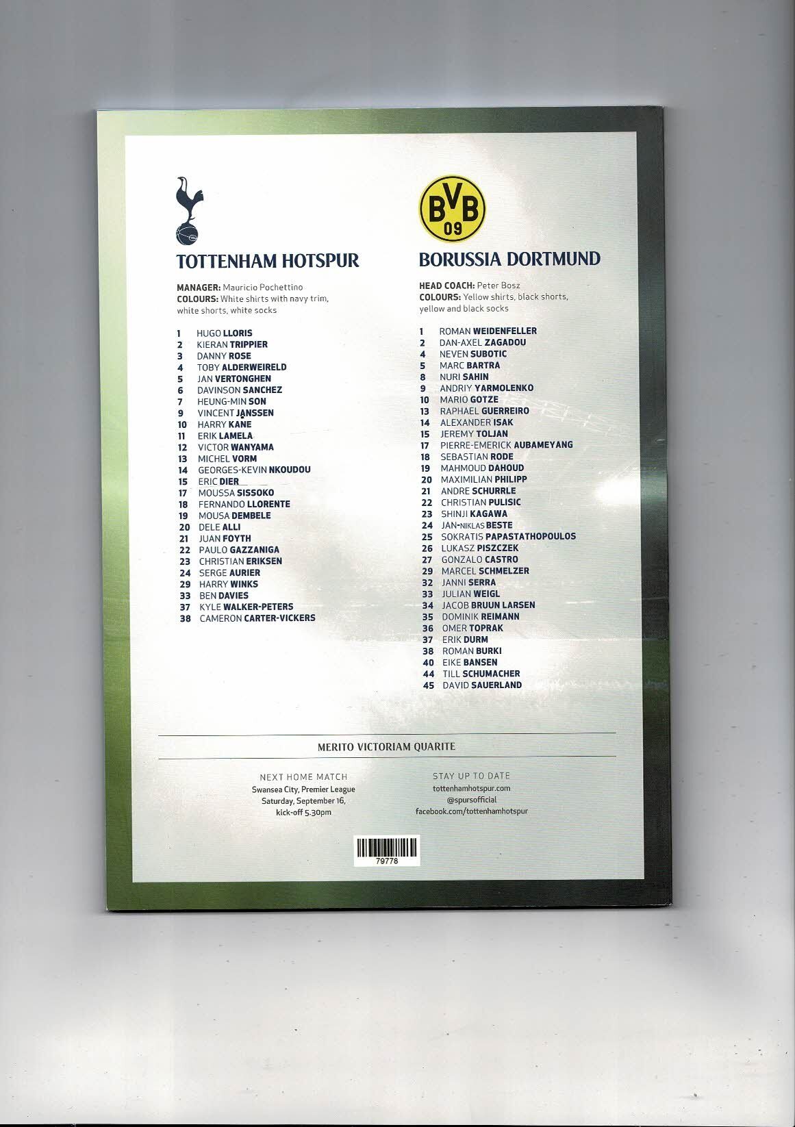 Tottenham Hotspur v Borussia Dortmund Champions League Football Programme 2017/18