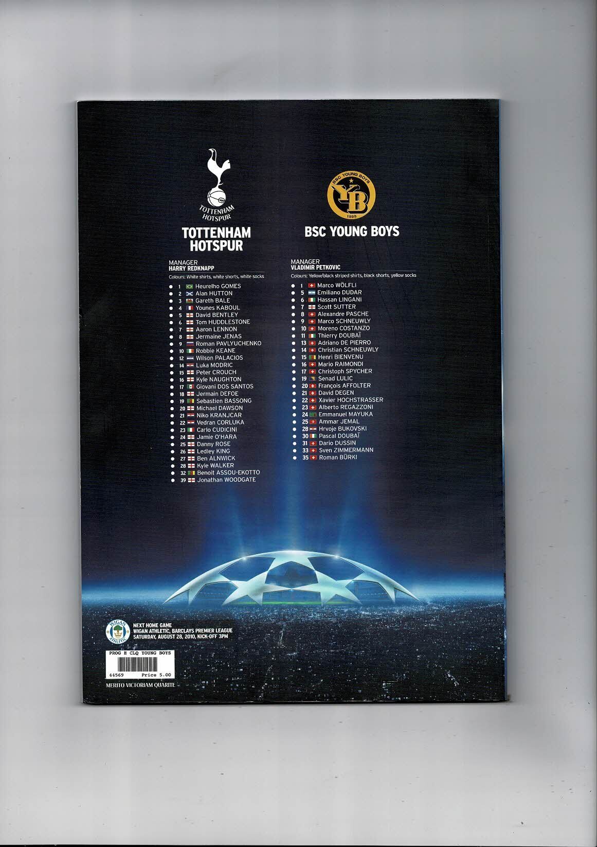 Tottenham Hotspur v BSC Young Boys Champions League Football Programme 2010/11