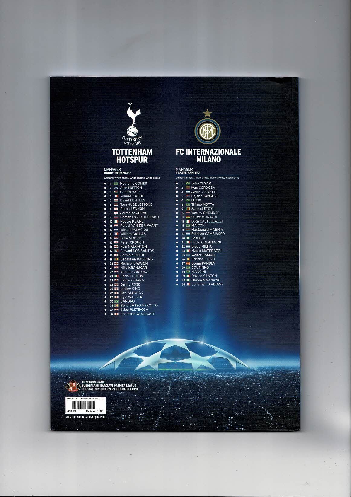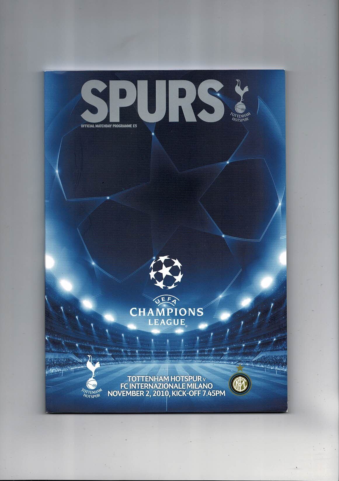 Tottenham Hotspur v FC Internazionale Milano Champions League Football Programme 2010/11