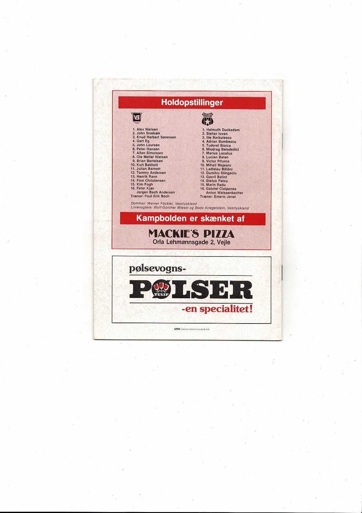Vejle B v Steaua Bucharest European Cup Football Programme 1985/86