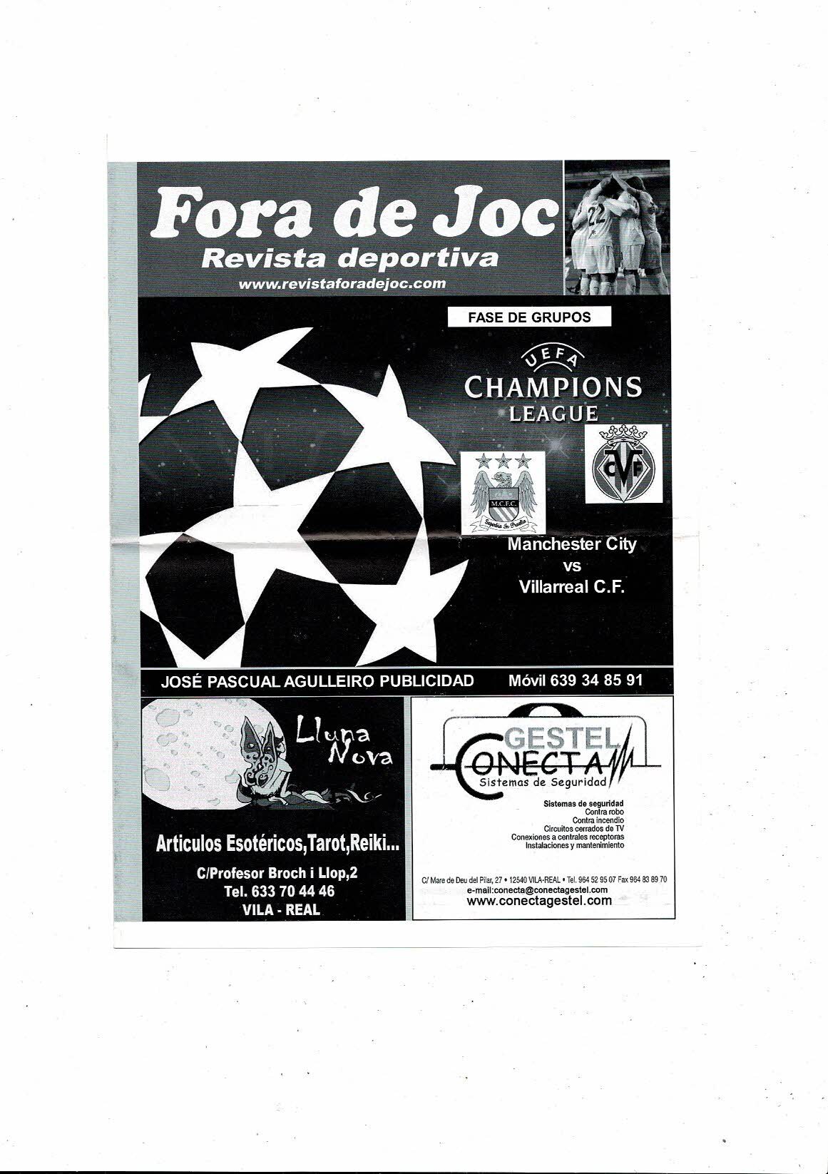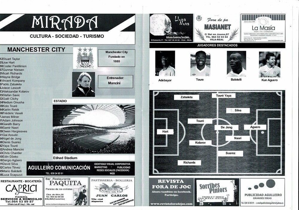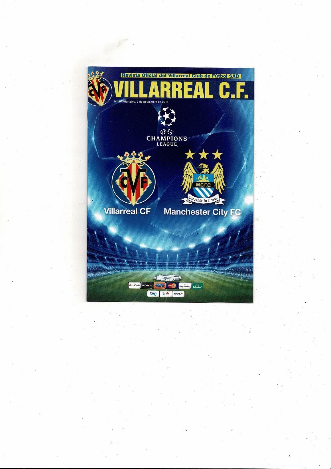 Villareal CF v Manchester City Champions League Football Programme, free Magazine and Supplement 2011/12