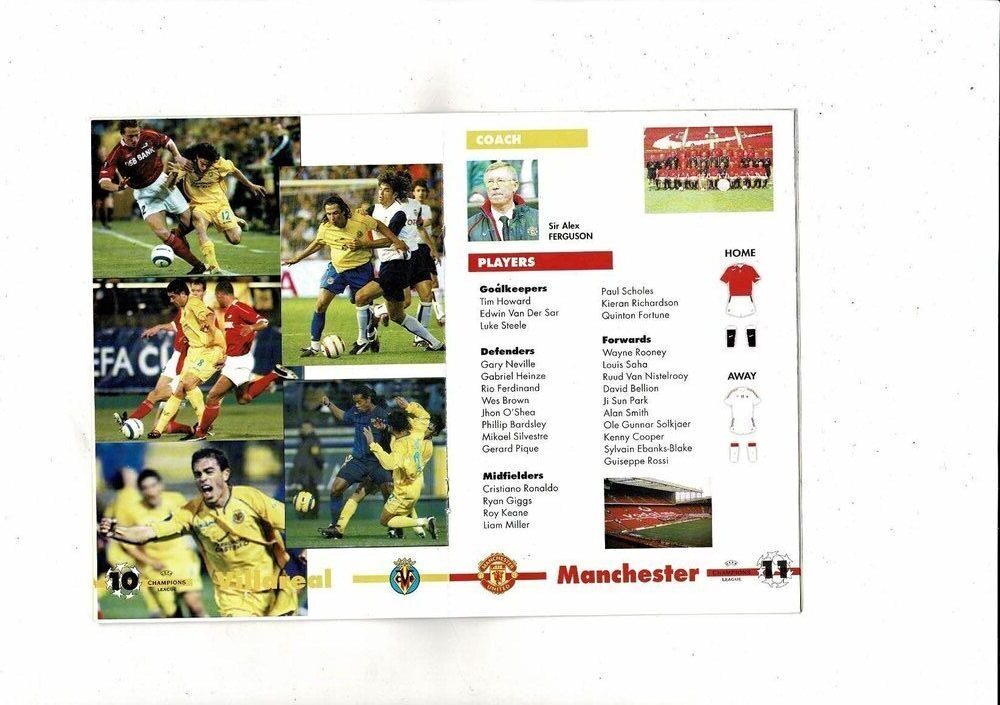 Villareal v Manchester United Champions League Football Programme/Handout/Newspaper Supplement 2005/06