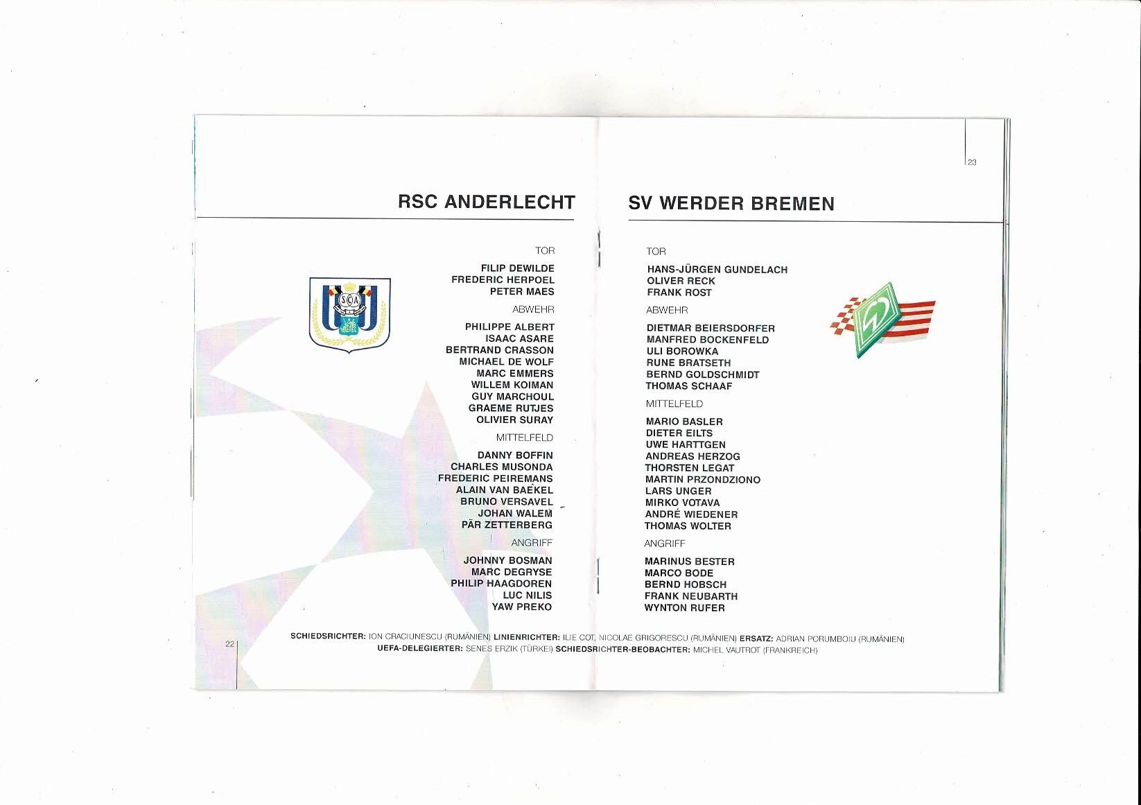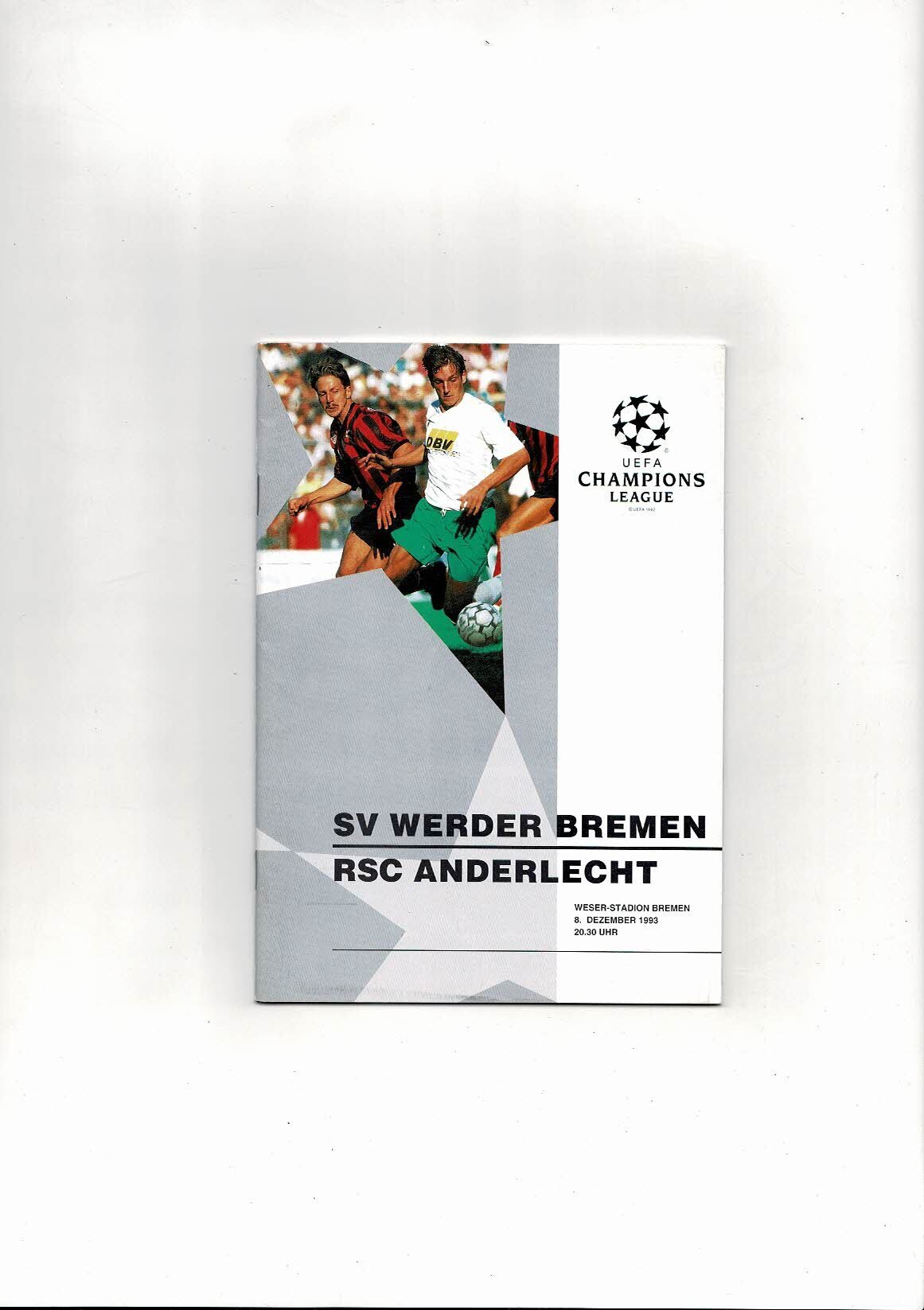 Werder Bremen v Anderlecht UEFA Champions League Football Programme 1993/94