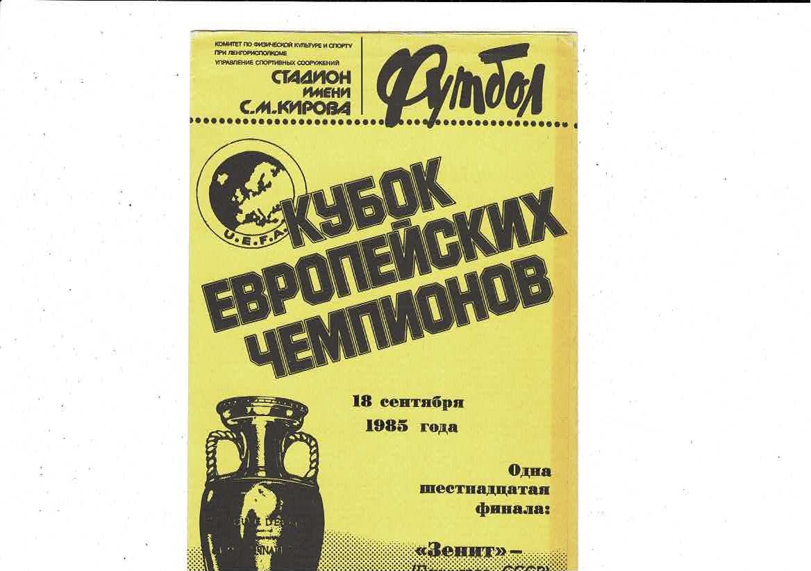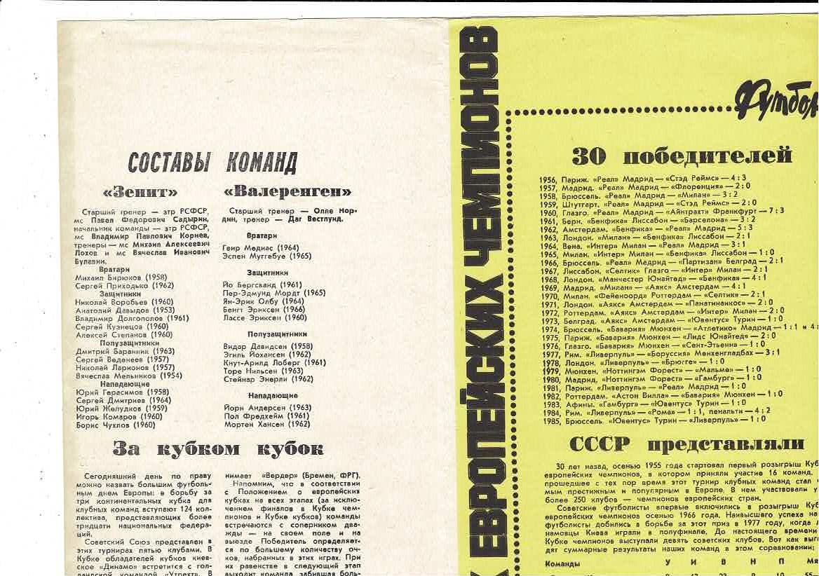 Zenit Leningrad v Valenrengen European Cup Football Programme 1985/86