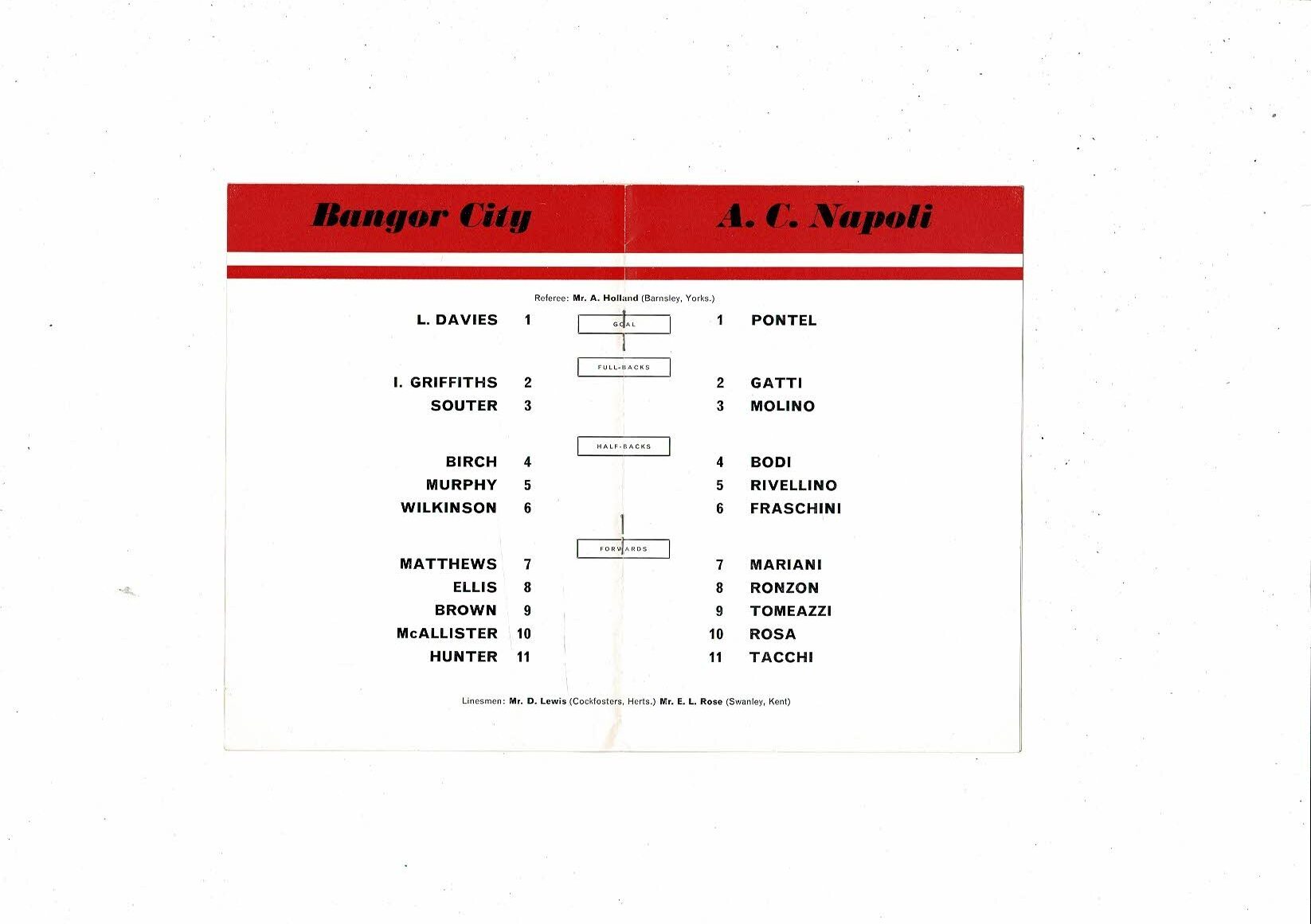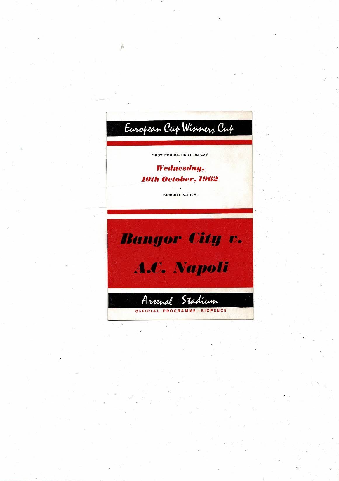 Bangor City v Napoli European Cup Winners Cup Football Programme 1962/63 @ Arsenal