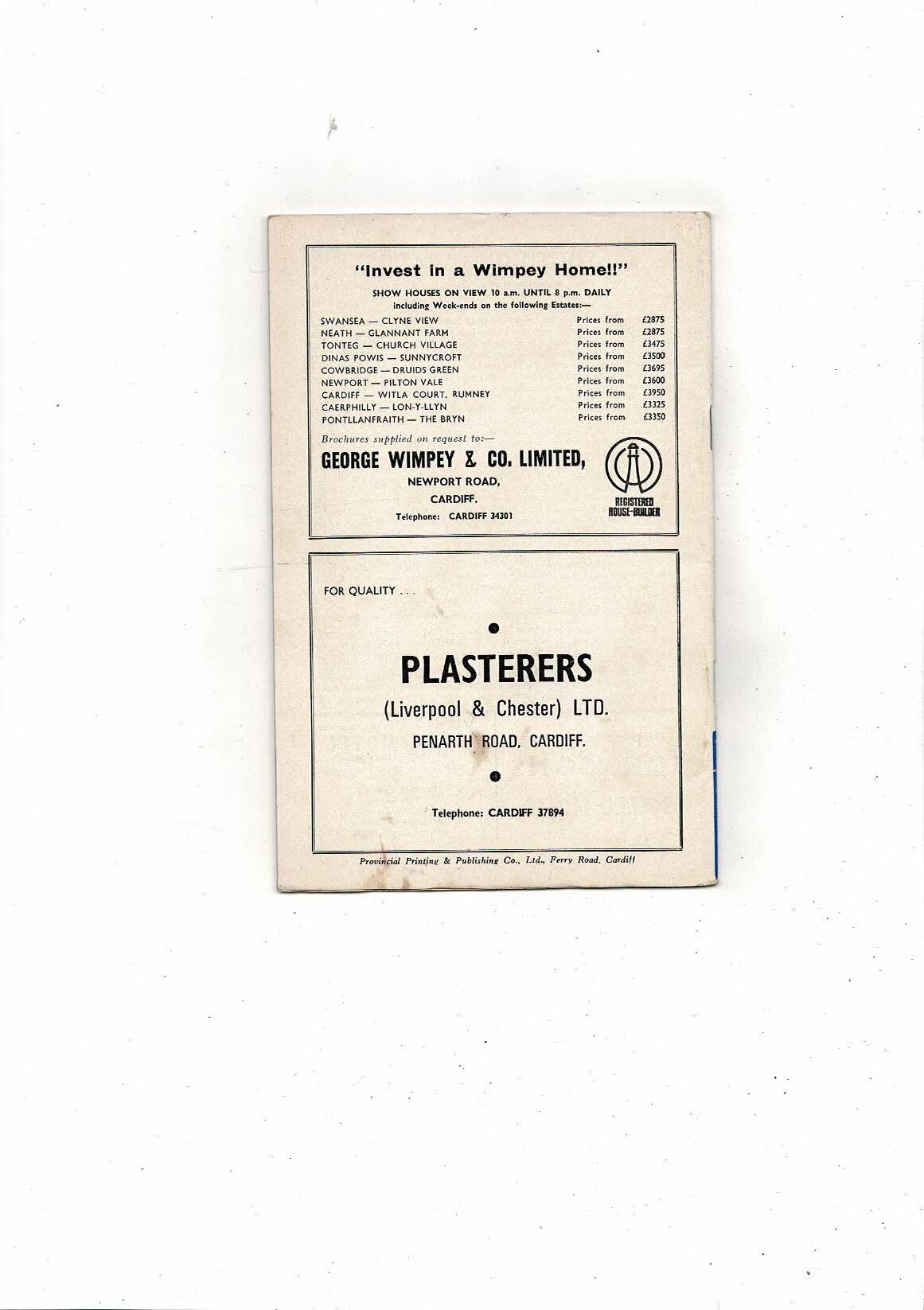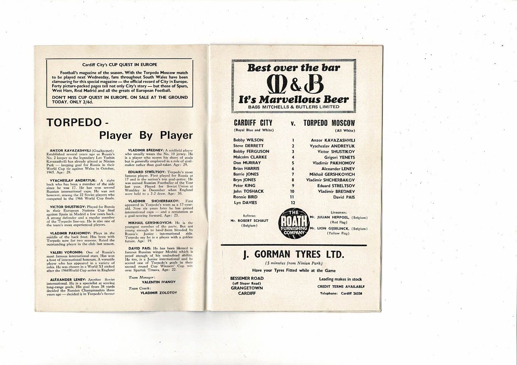 Cardiff City v Torpedo Moscow European Cup Winners Cup Football Programme 1967/68