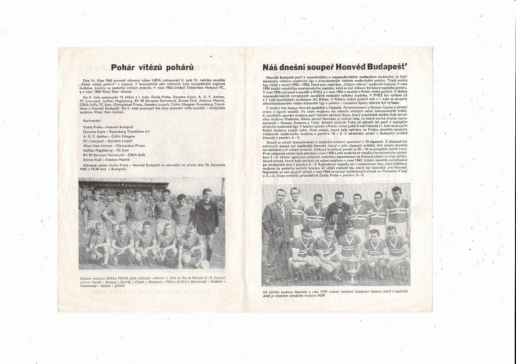 Dukla Prague v Honved Budapest European Cup Winners Cup Football Programme 1965/66