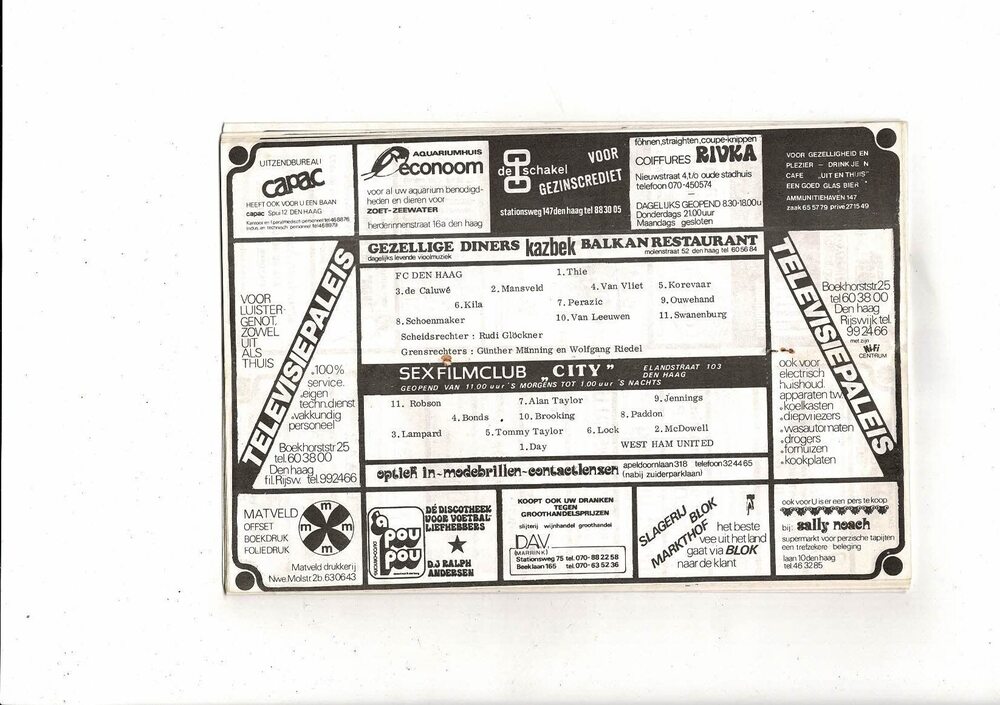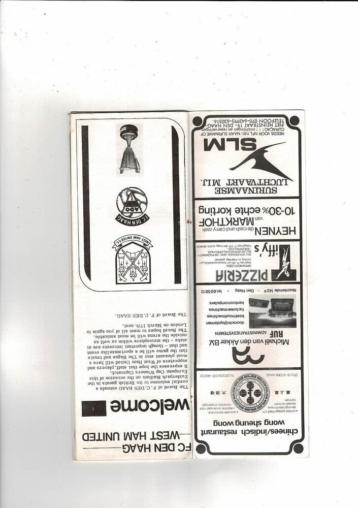 FC Den Haag v West Ham United European Cup Winners Cup Football Programme 1975/76