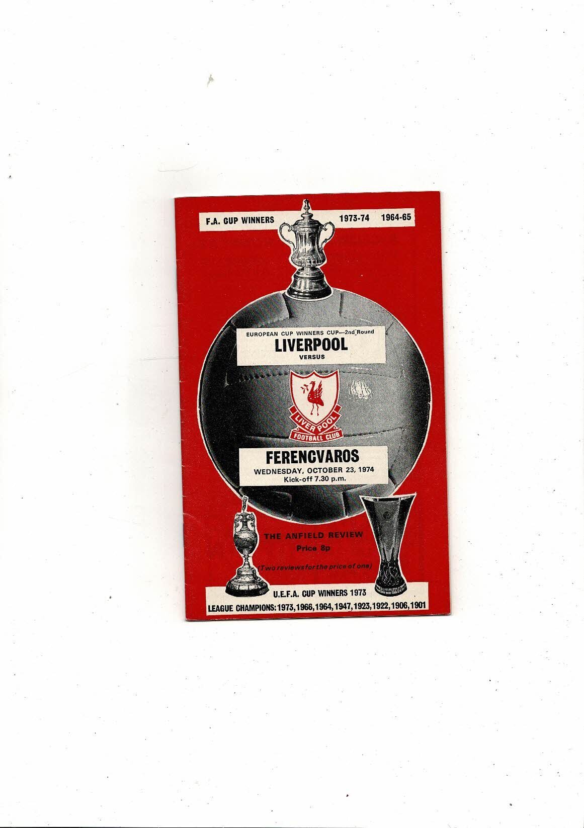 Liverpool v Ferencvaros European Cup Winners Cup Football Programme 1974/75