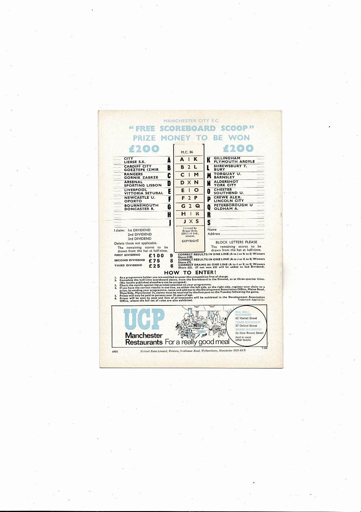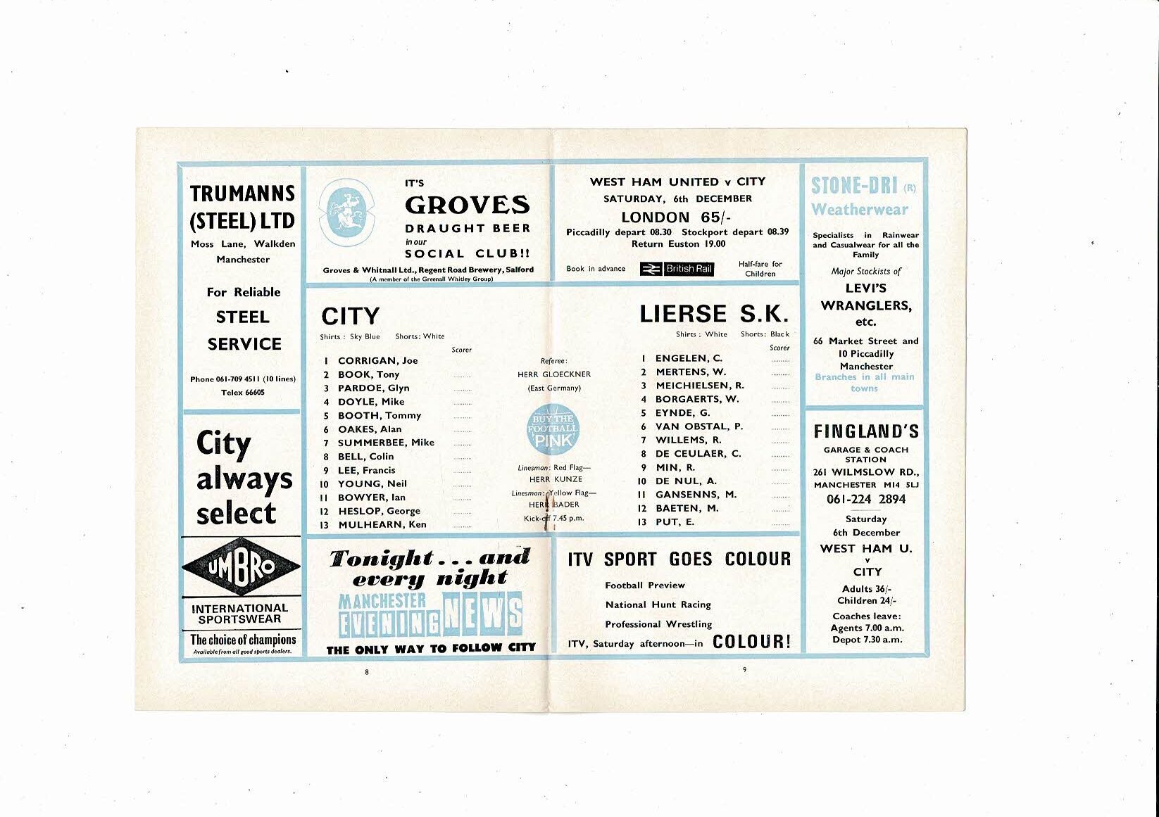 Manchester City v Lierse European Cup Winners Cup Football Programme 1969/70