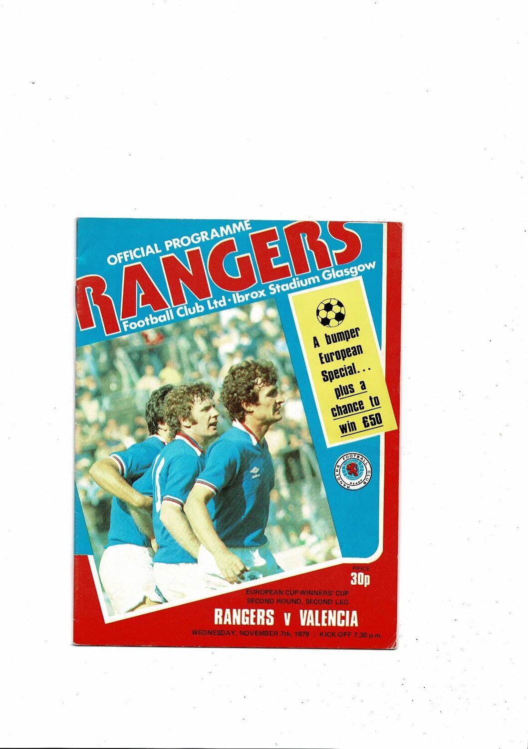 Rangers v Valencia European Cup Winners Cup Football Programme 1979/80