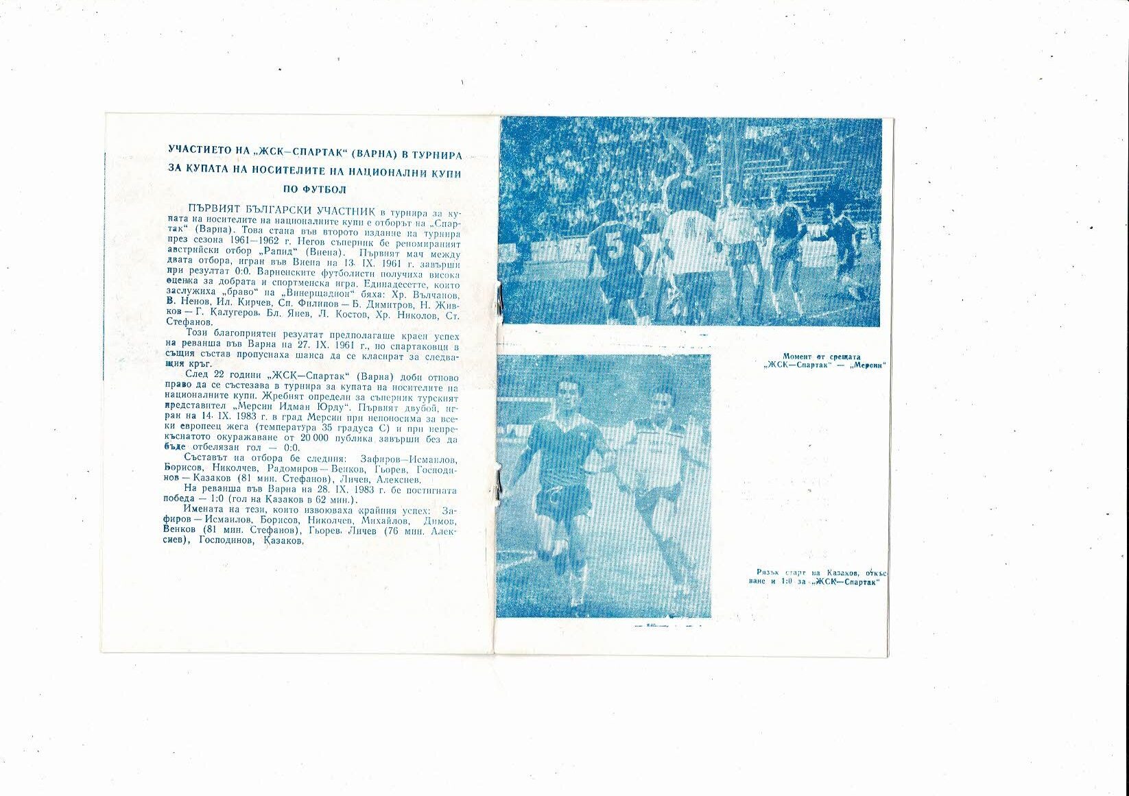 Spartak Varna v Manchester United European Cup Winners Cup Programmet 1983/84