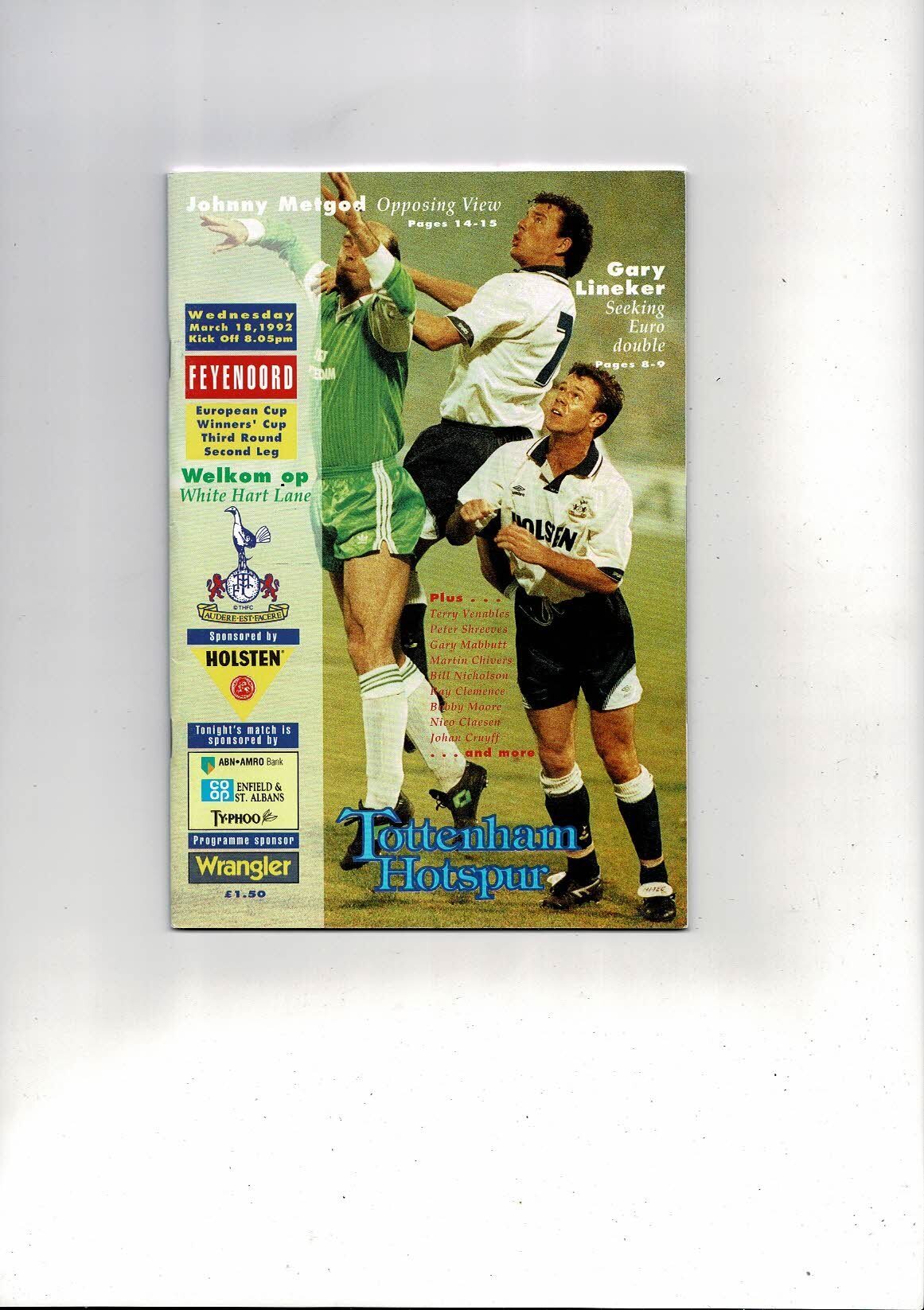 Tottenham Hotspur v Feyenoord European Cup Winners Cup Football Programme 1991/92