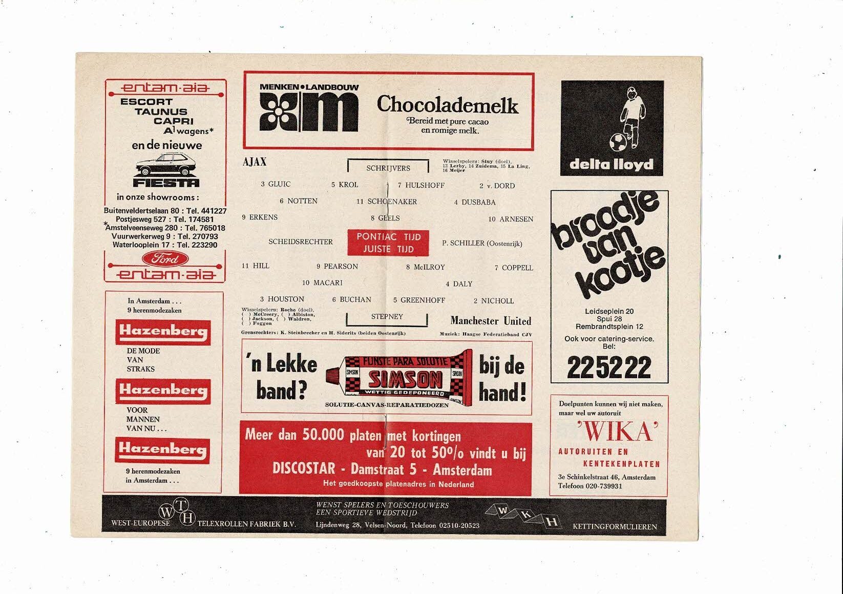 Ajax v Manchester United UEFA Cup Football Programme 1976/77