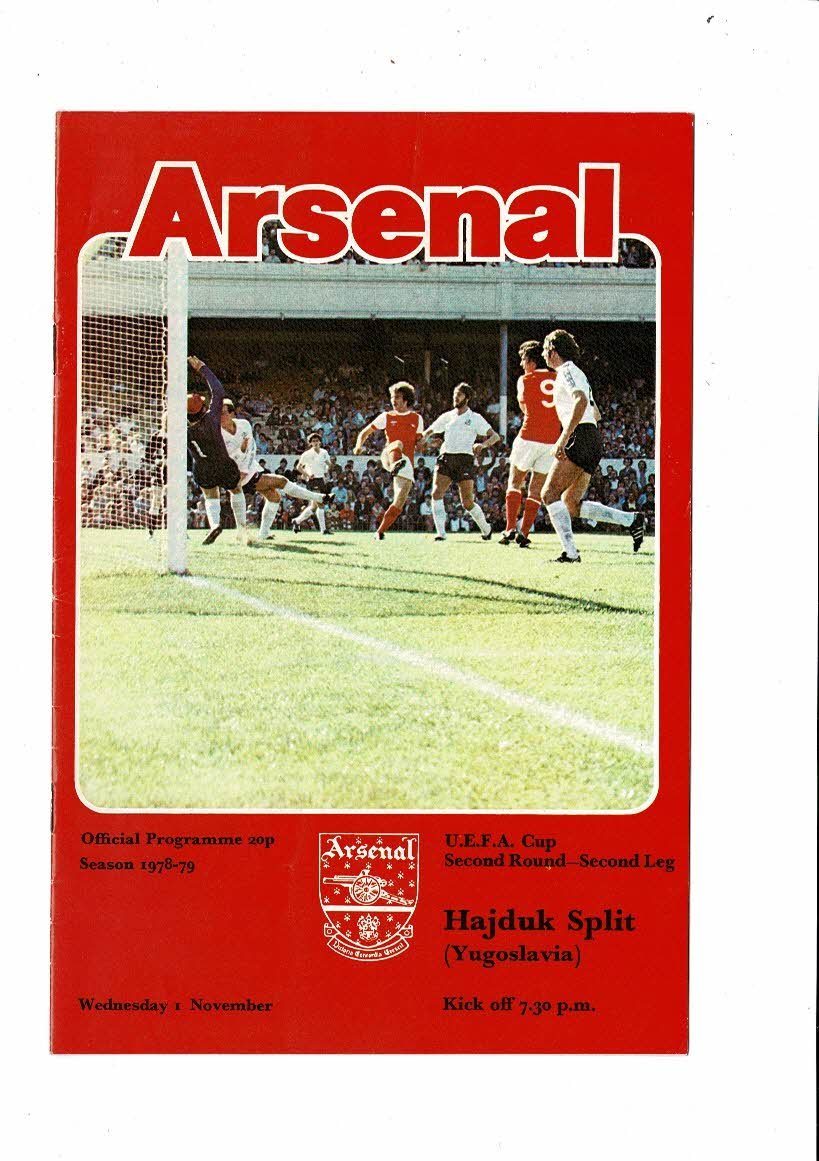 Arsenal v Hajduk Split UEFA Cup Football Programme 1978/79