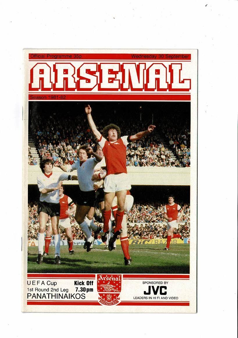 Arsenal v Panathinaikos UEFA Cup Football Programme 1981/82