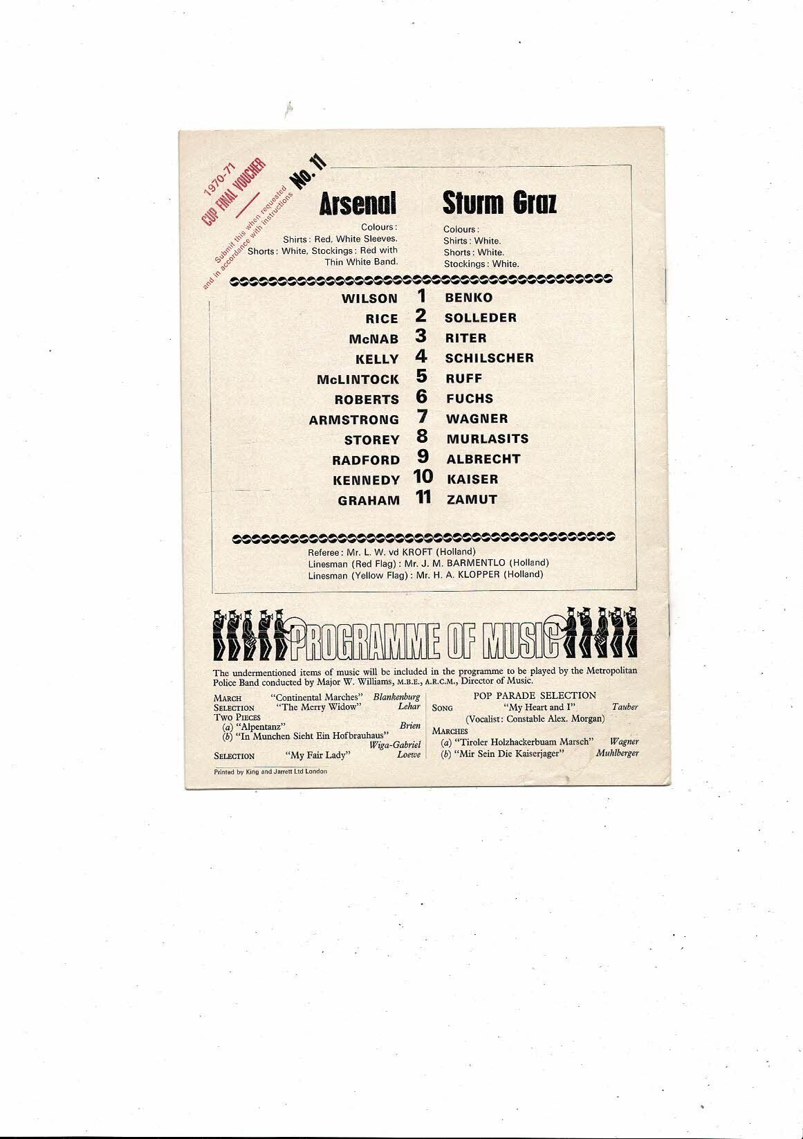 Arsenal v Strum Graz Fairs Cup Football Programme 1970/71
