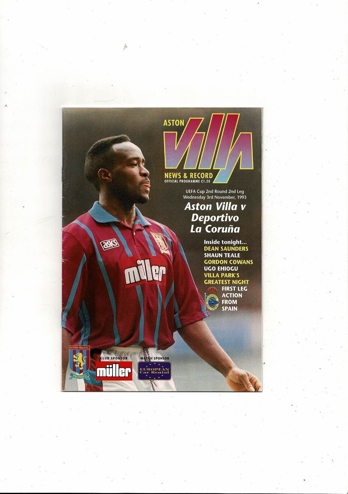 Aston Villa v Deportivo La Coruna UEFA Cup Football Programme 1993/94