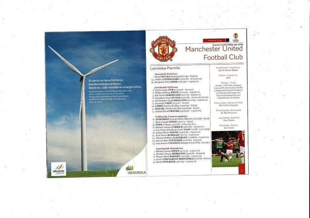 Athletic Club Bilbao v Manchester United Europa League Football Match Booklet and Star Magazine 2011/12