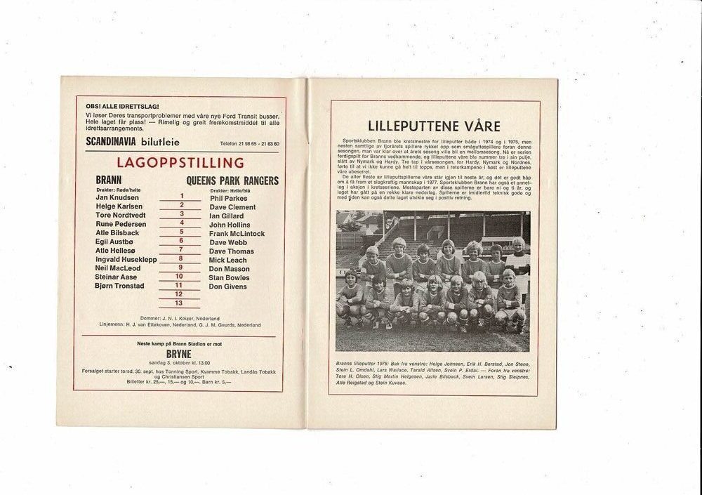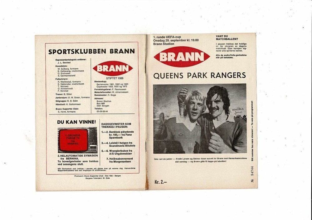 Brann Bergen v Queens Park Rangers UEFA Cup Football Programme 1976/77