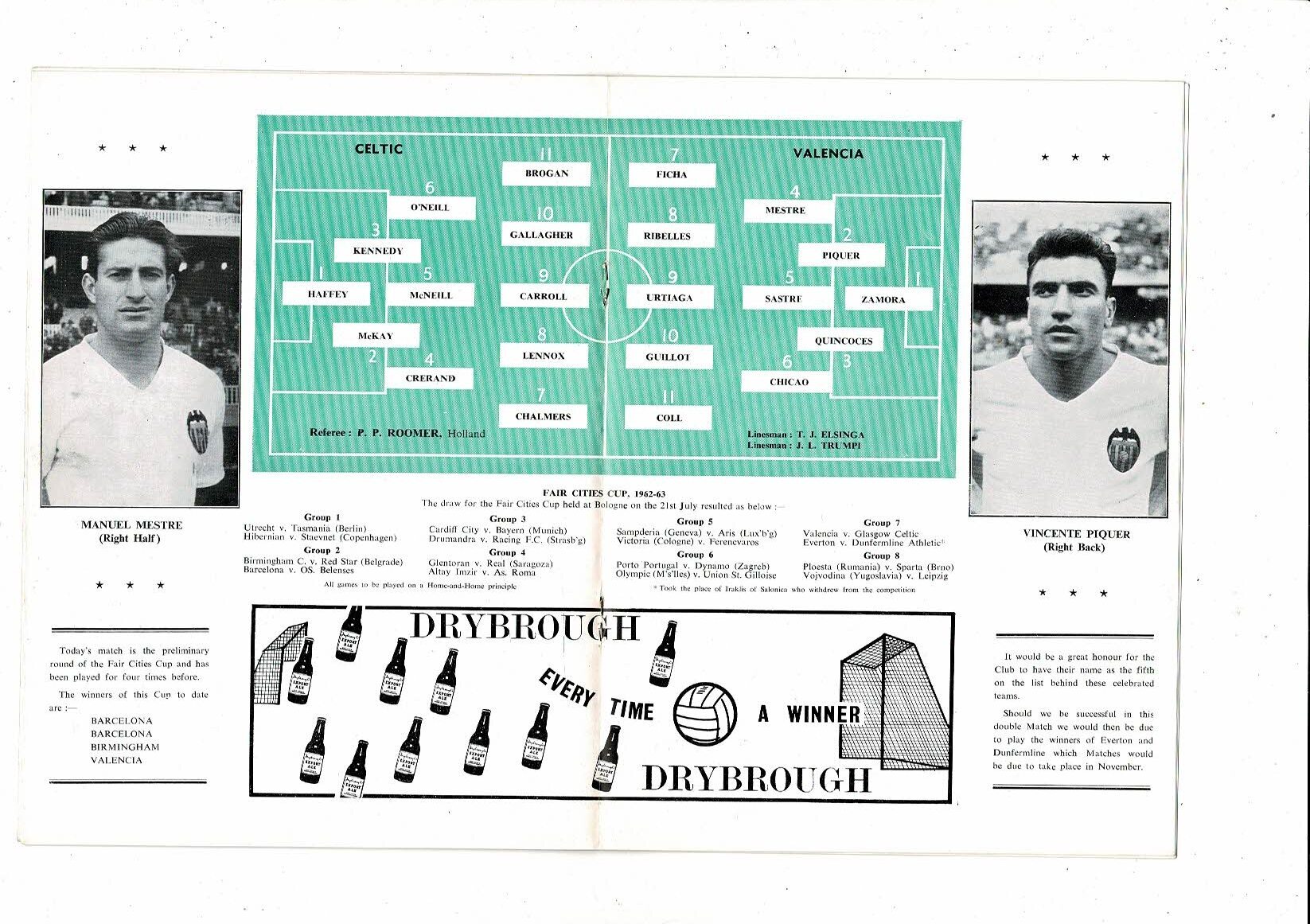 Celtic v Valencia Fairs Cup Football Programme 1962/63