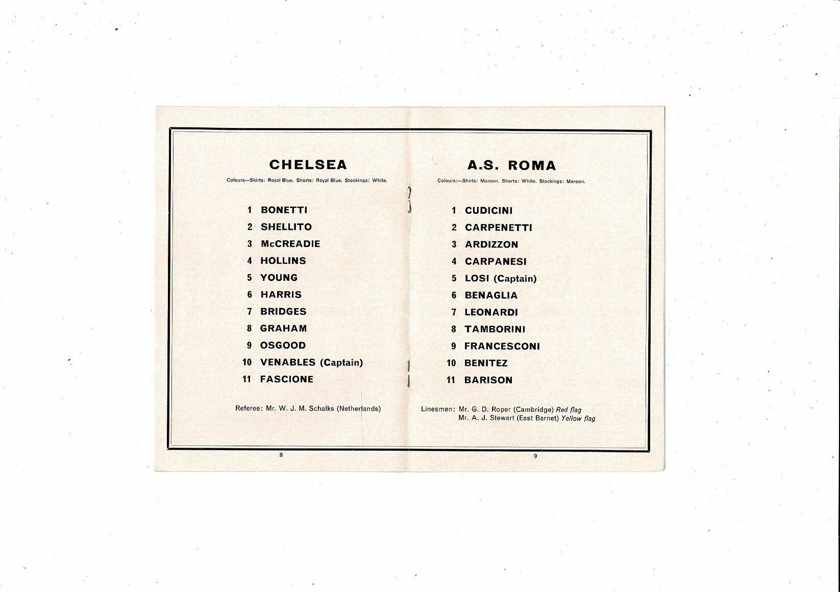 Chelsea v AS Roma Fairs Cup Football Programme 1965/66