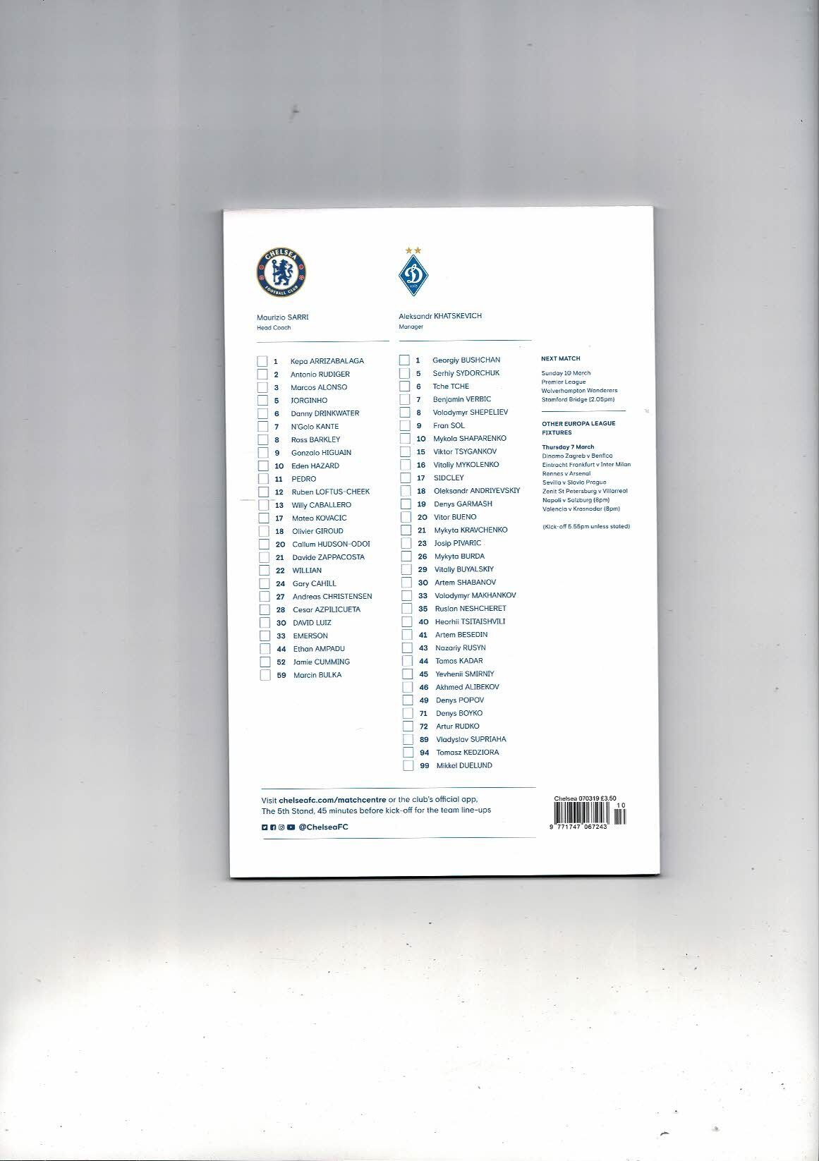 Chelsea v Dynamo Kiev Europa League Football Programme 2018/19