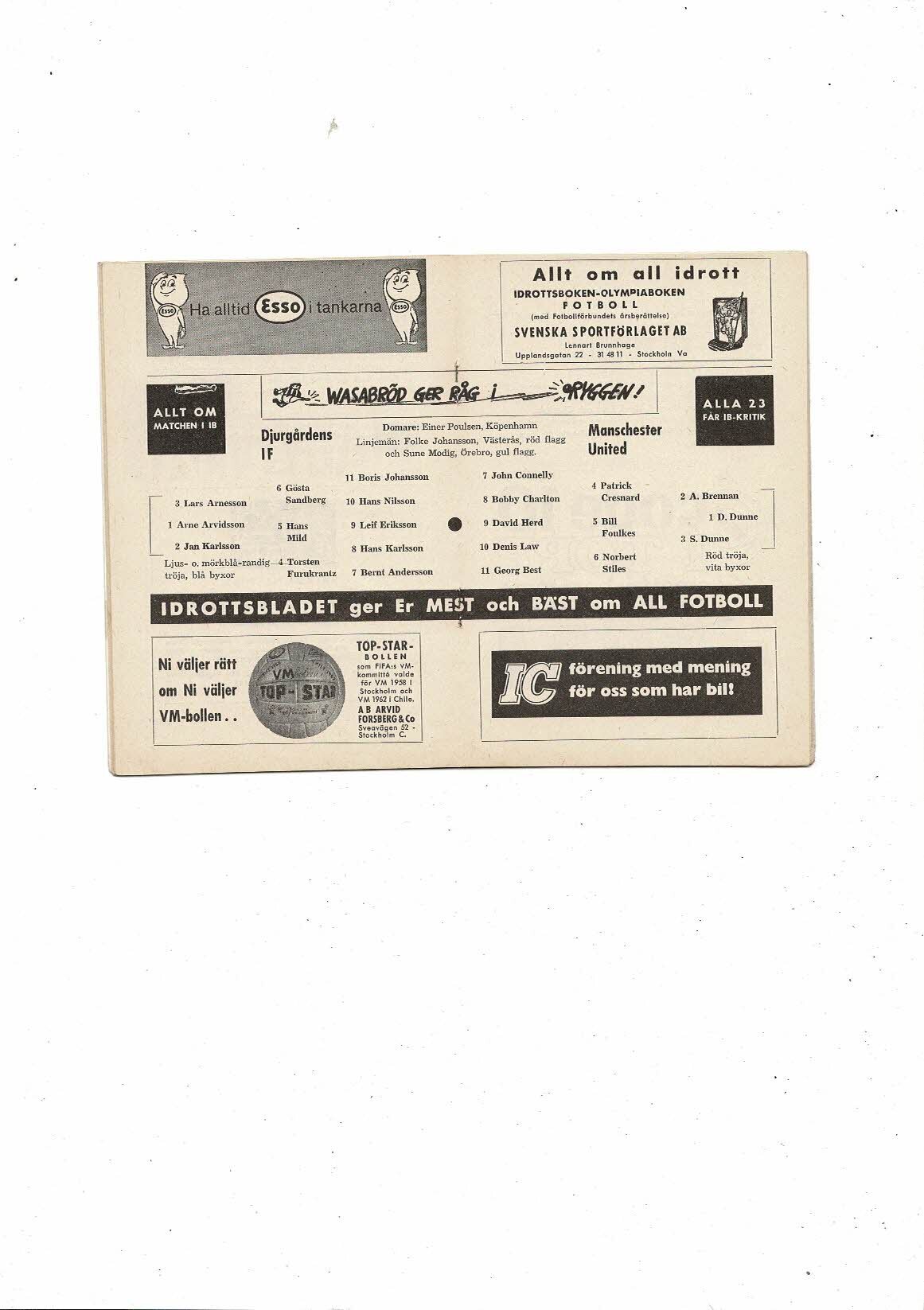 Djurgardens v Manchester United Fairs Cup Football Programme 1964/65