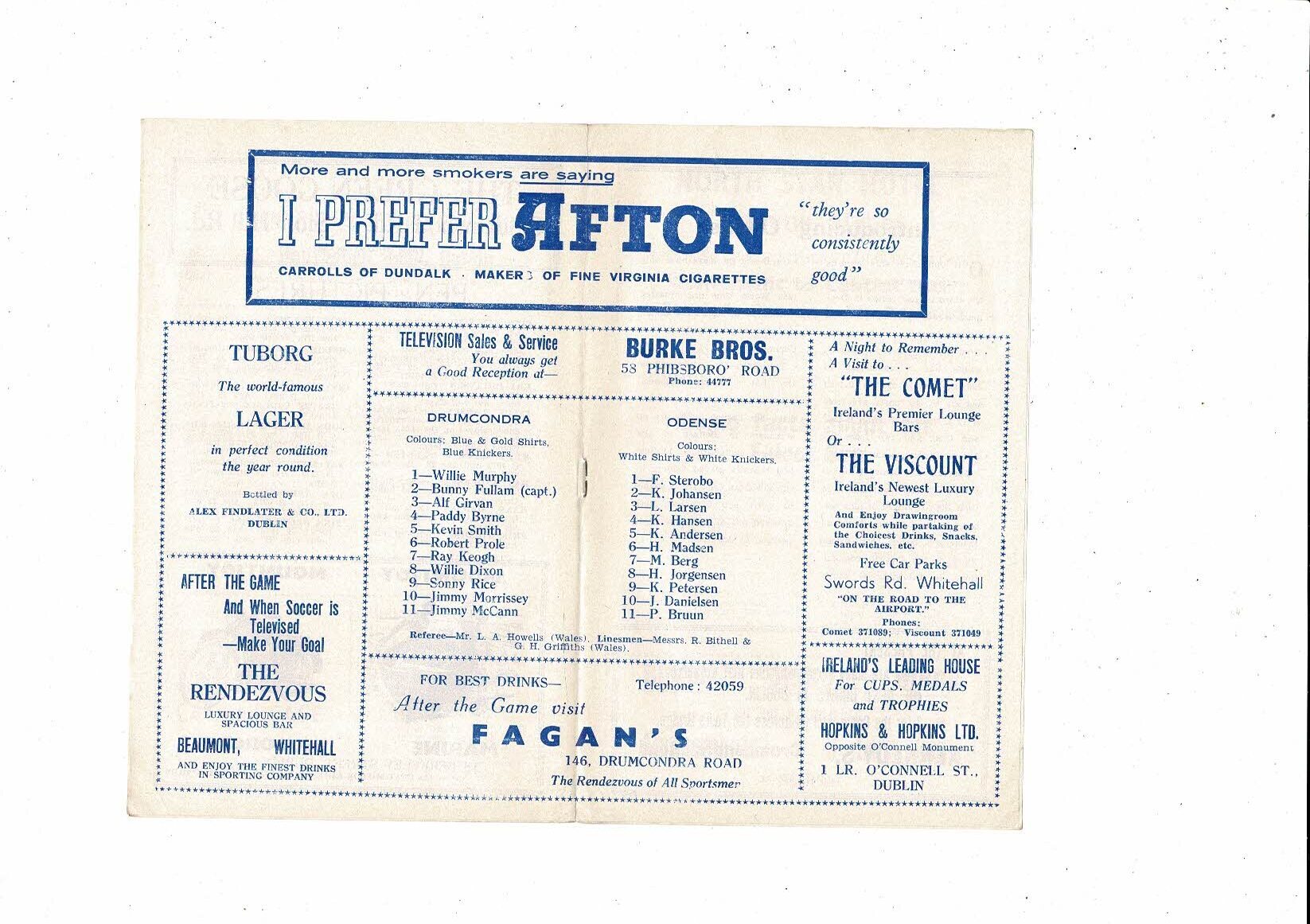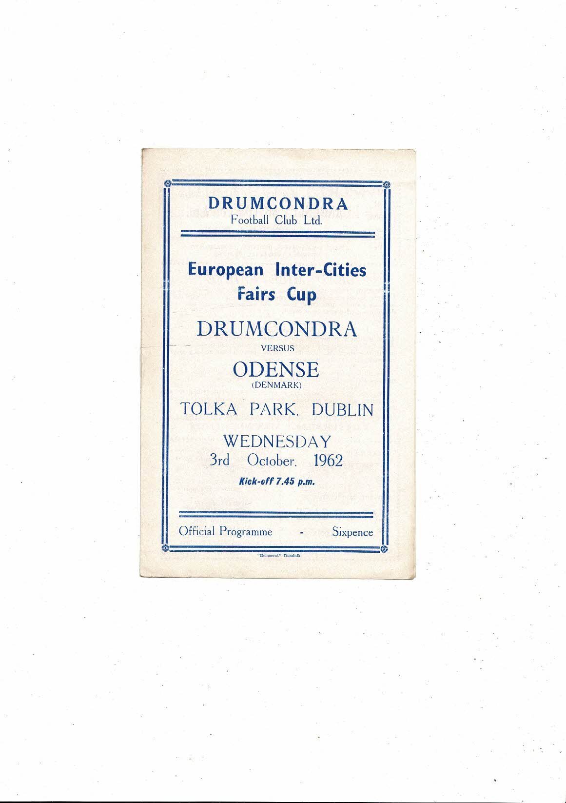 Drumcondra v Odense Fairs Cup Football Programme 1962/63