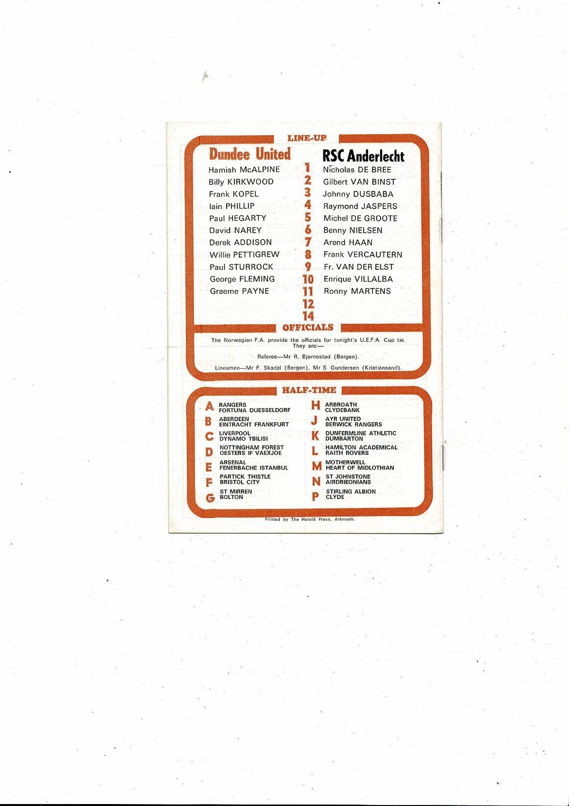 Dundee United v Anderlecht UEFA Cup Football Programme 1979/80