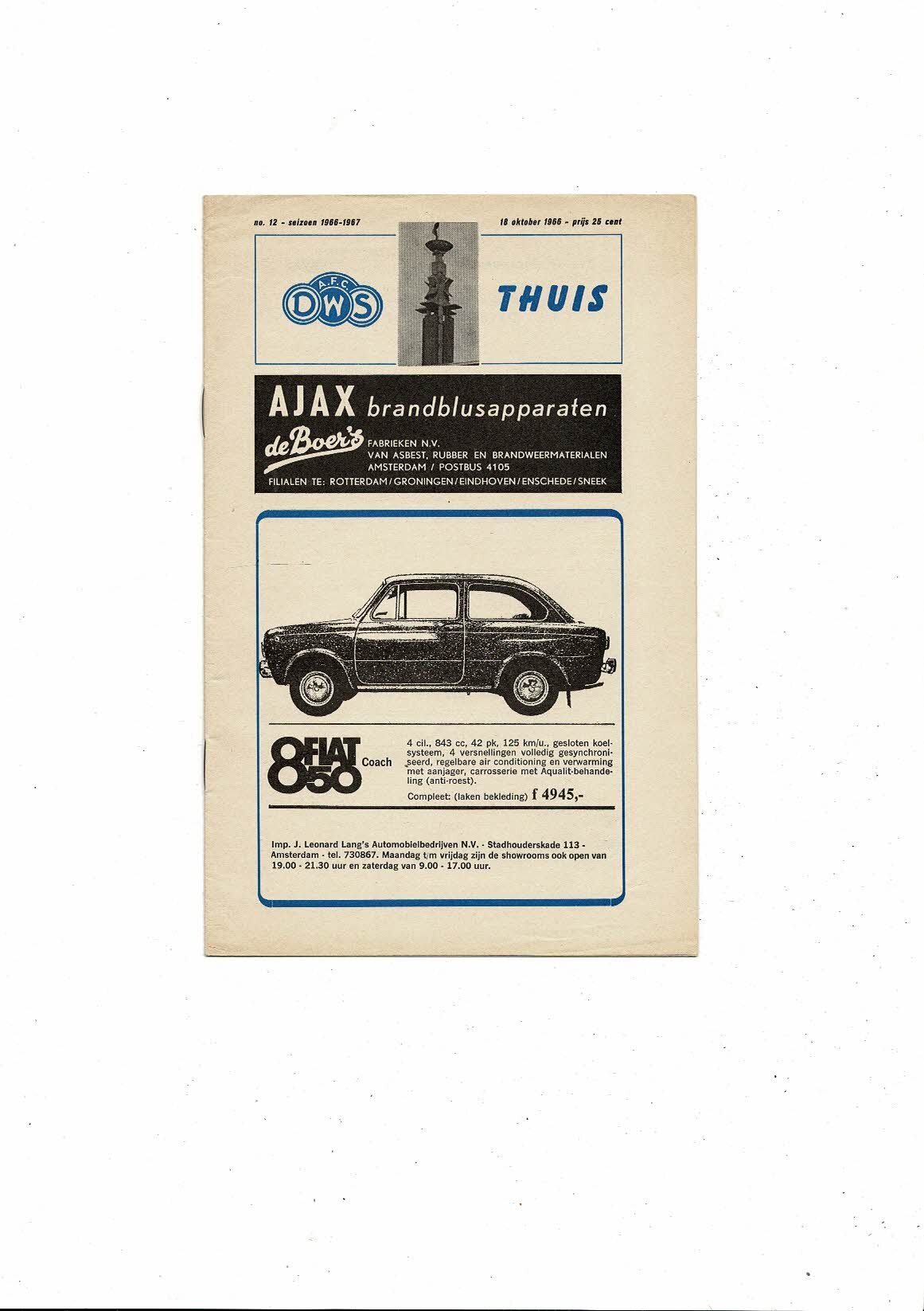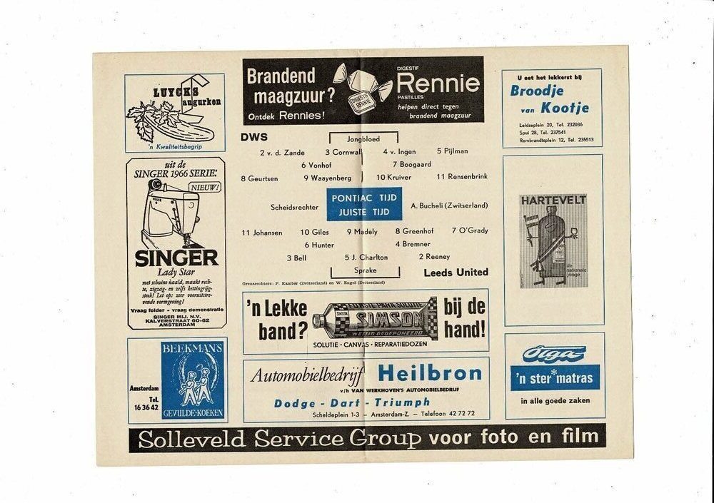 DWS Amsterdam v Leeds United Fairs Cup Football Programme 1966/67