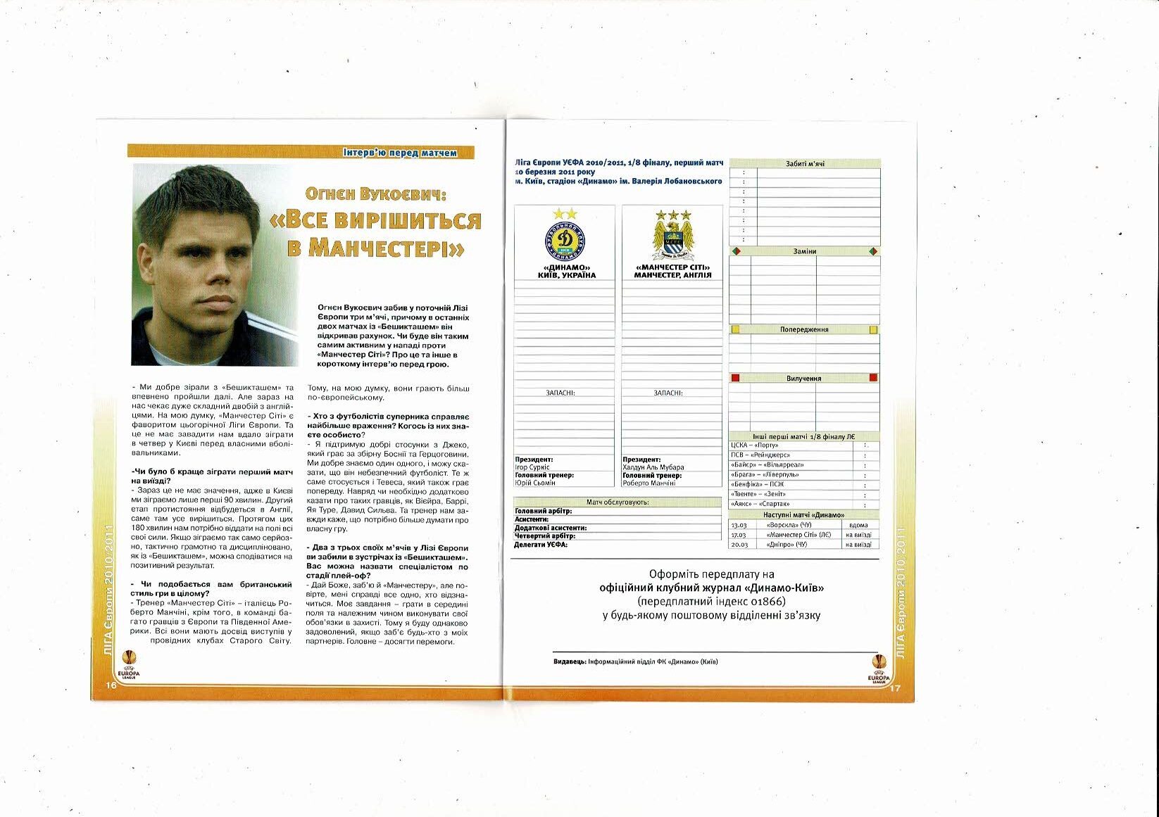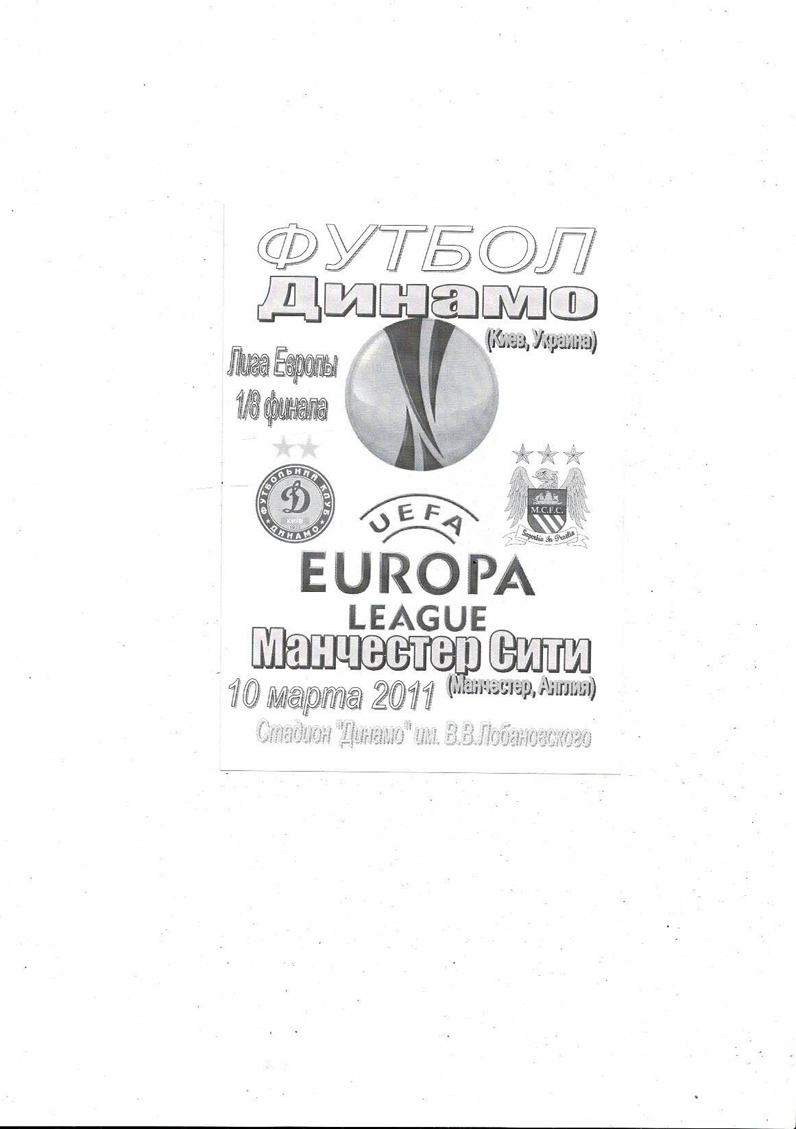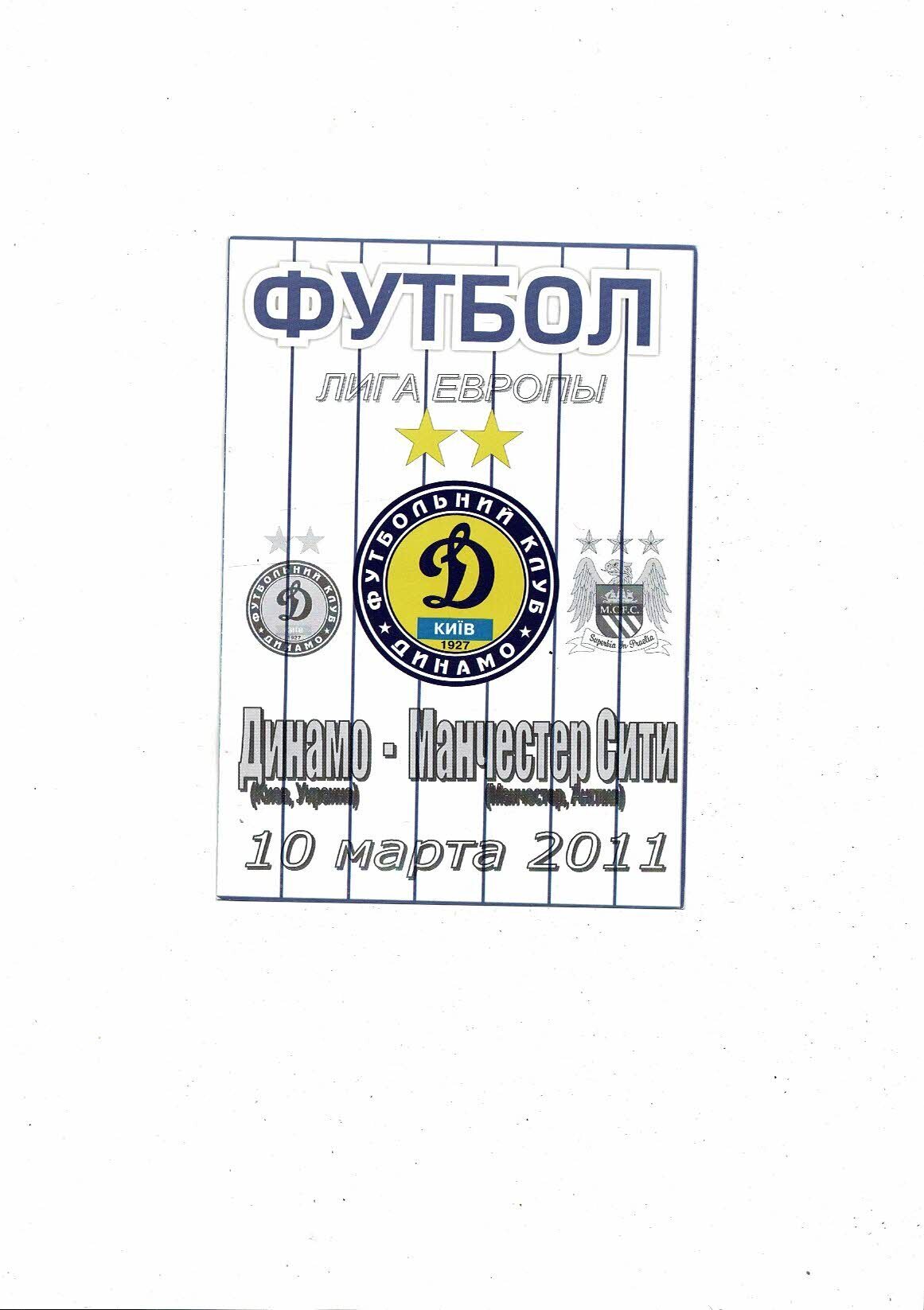 Dynamo Kiev v Manchester City Official Europa League Football Programme + 3 Unofficial Football Programmes 2010/11