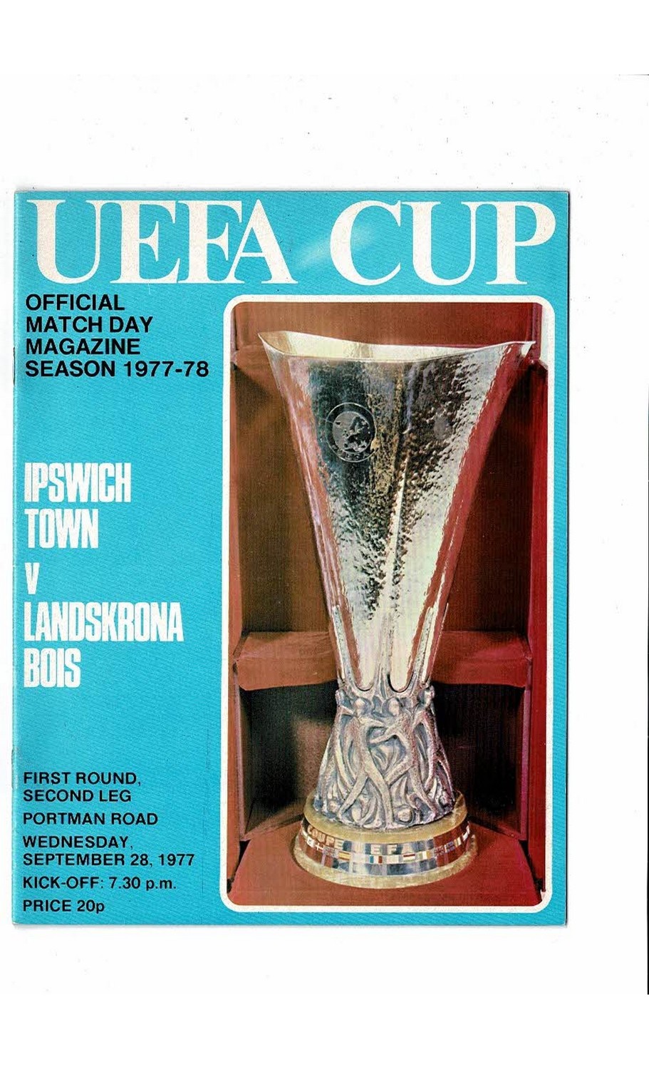 Ipswich Town v Landskrona Bois UEFA Cup Football Programme 1977/78