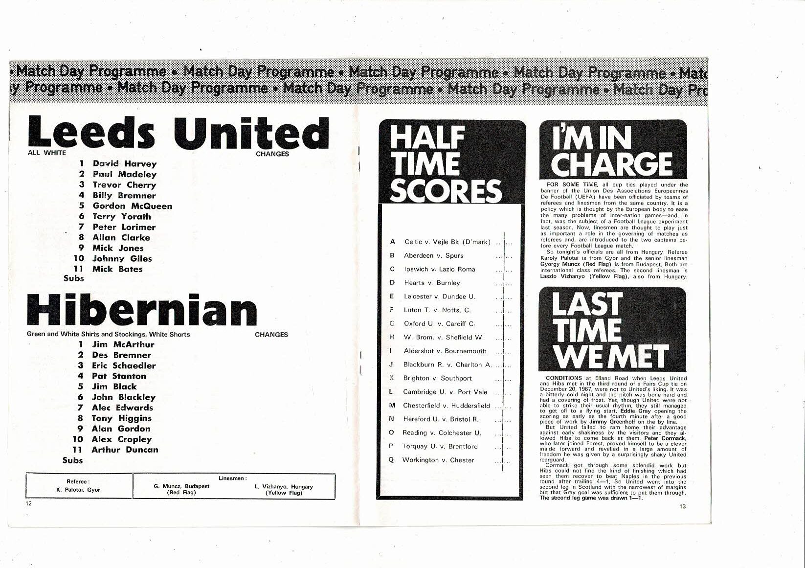 Leeds United v Hibernian UEFA Cup Football Programme 1973/74