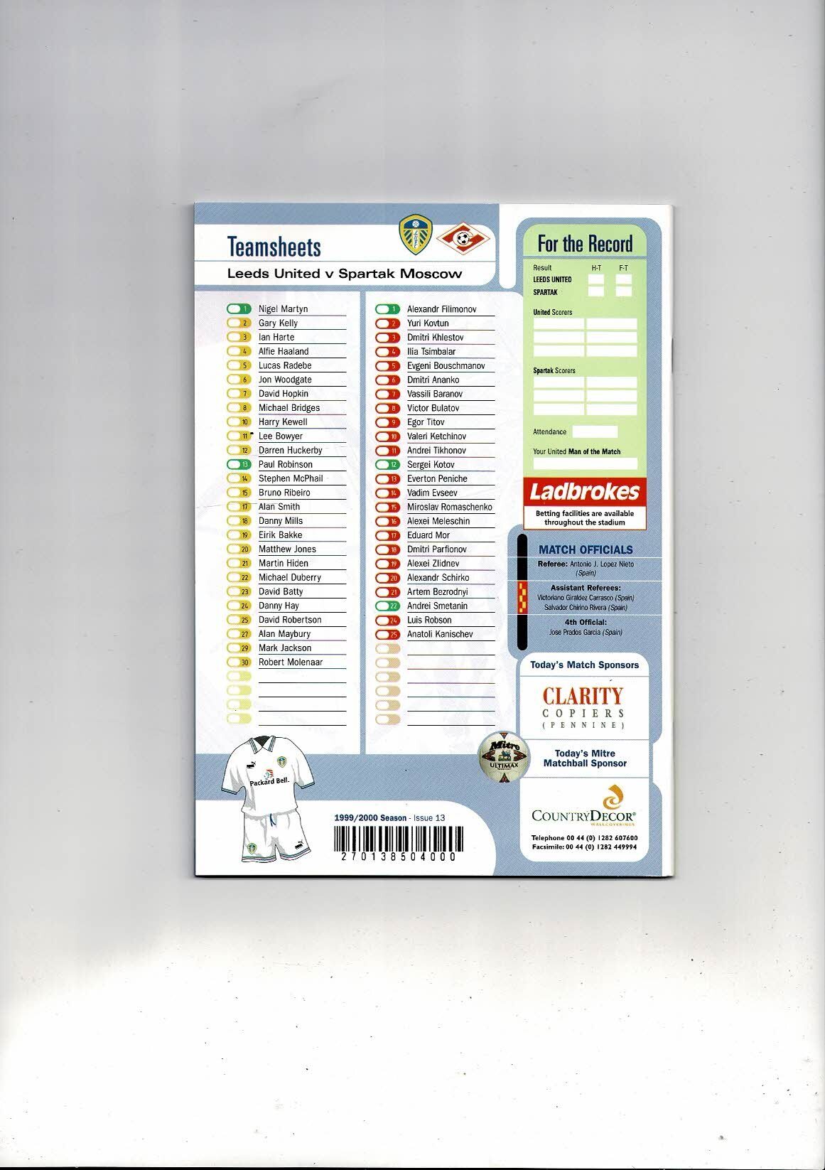 Leeds United v Spartak Moscow UEFA Cup Football Programme 1999/00