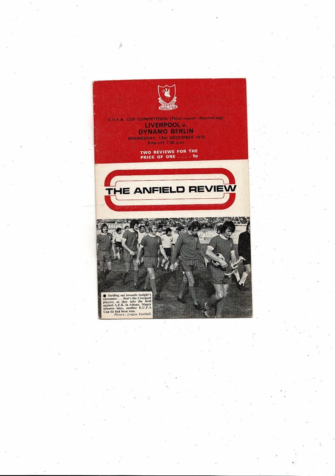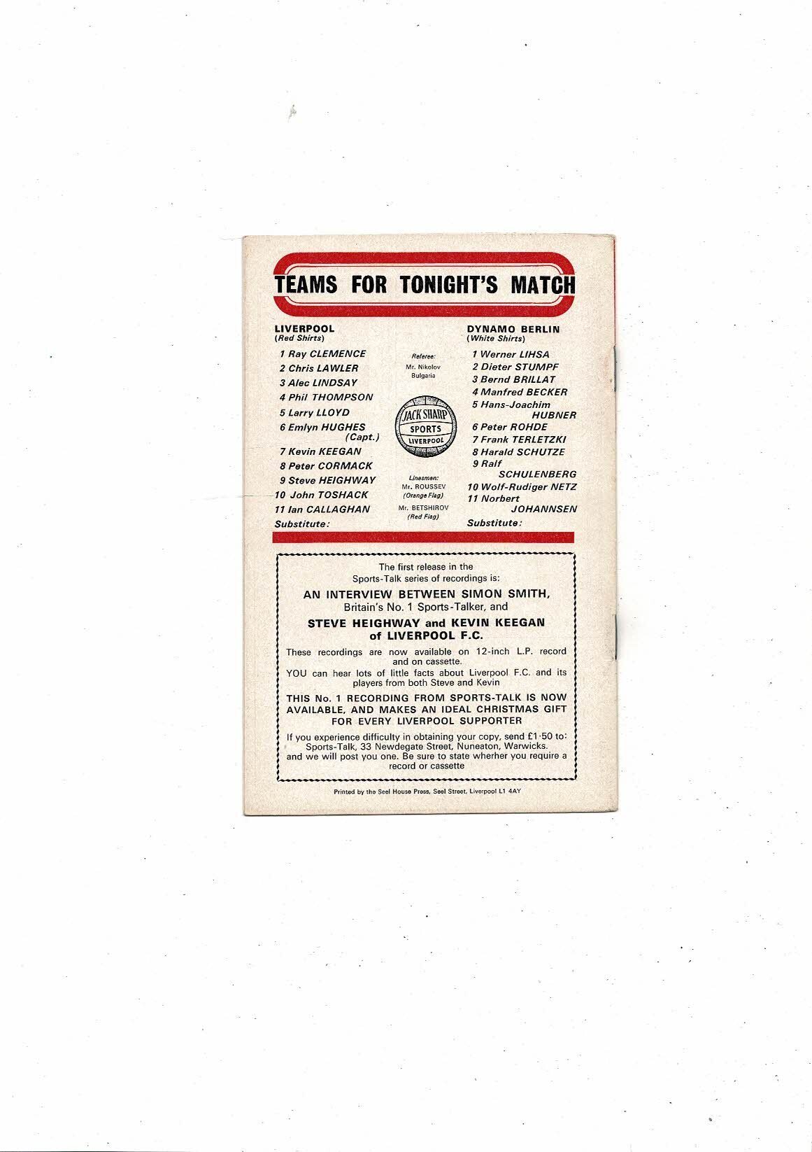 Liverpool v Dynamo Berlin UEFA Cup Football Programme 1972/73