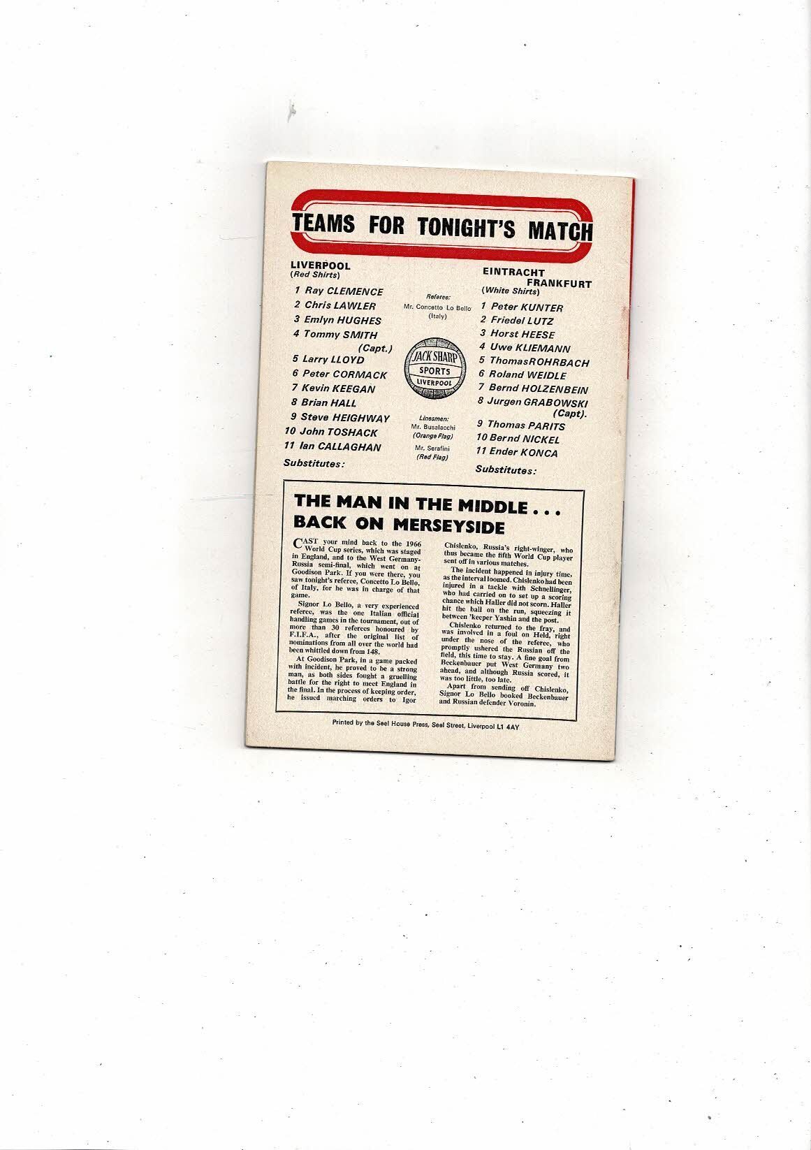 Liverpool v Eintracht Frankfurt UEFA Cup Football Programme 1972/73 + League Review