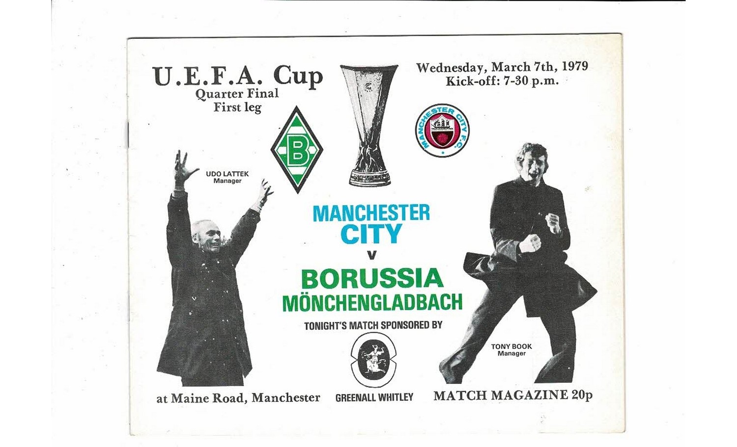 Manchester City v Borussia Monchengladbach UEFA Cup Football Programme 1978/79