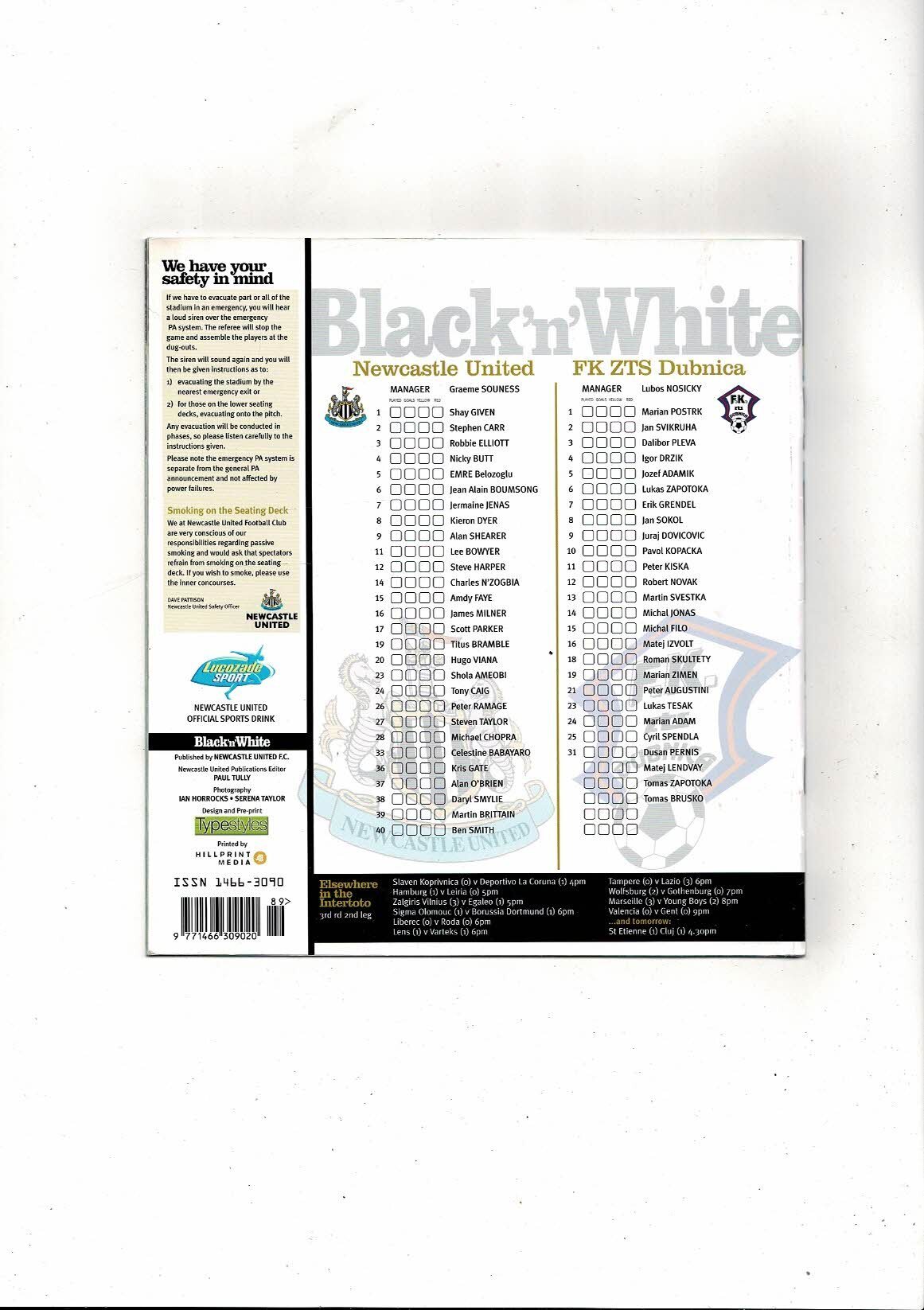 Newcastle United v FK ZTS Dubnica Intertoto Cup Football Programme 2005/06