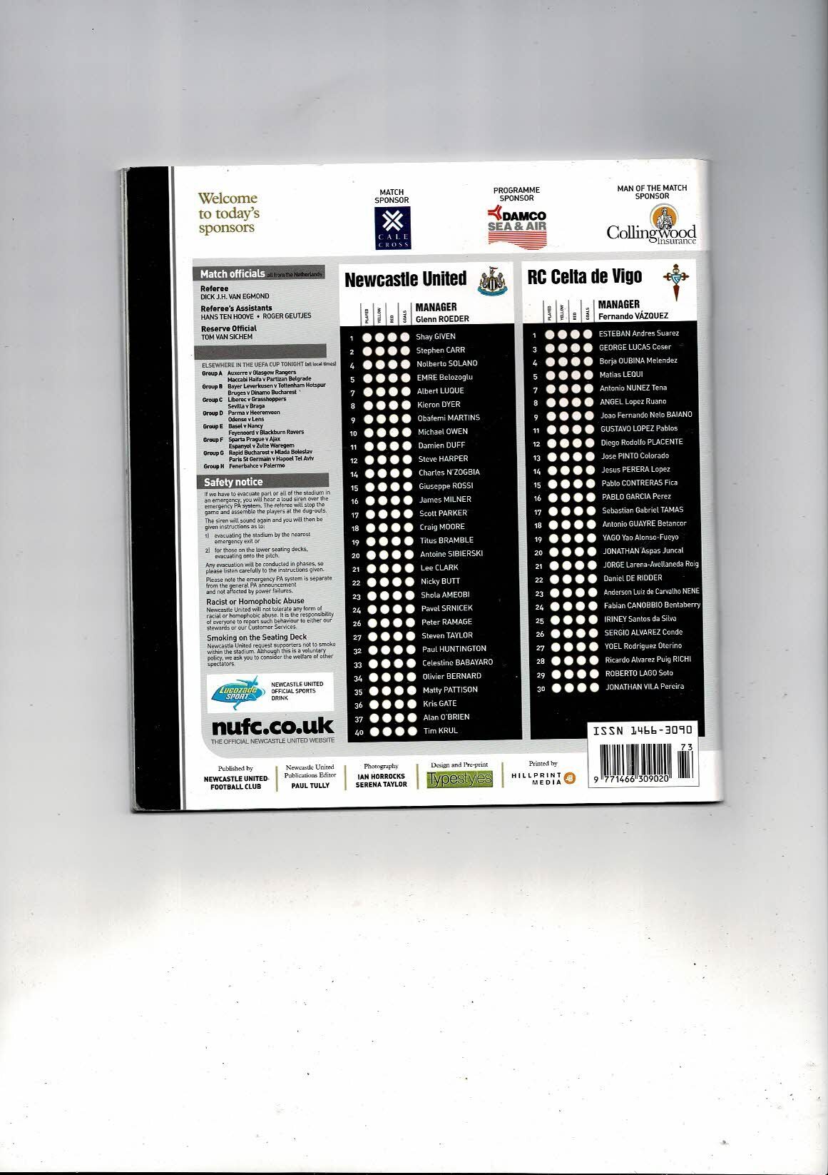 Newcastle United v RC Celta de Vigo UEFA Cup Football Programme 2006/07
