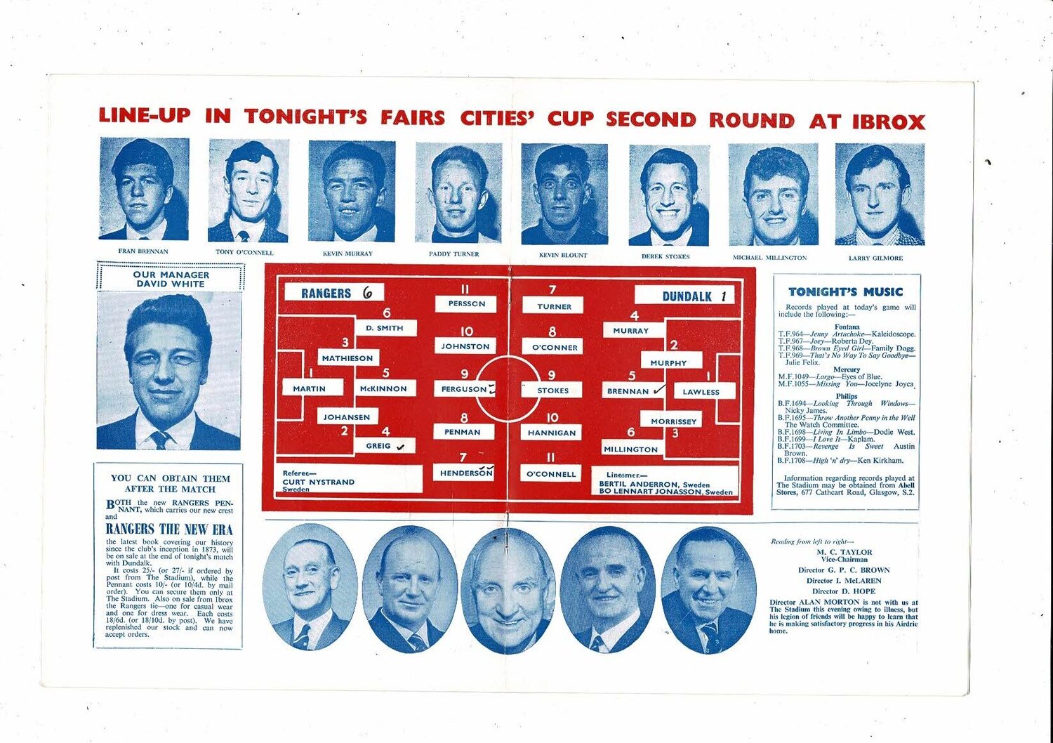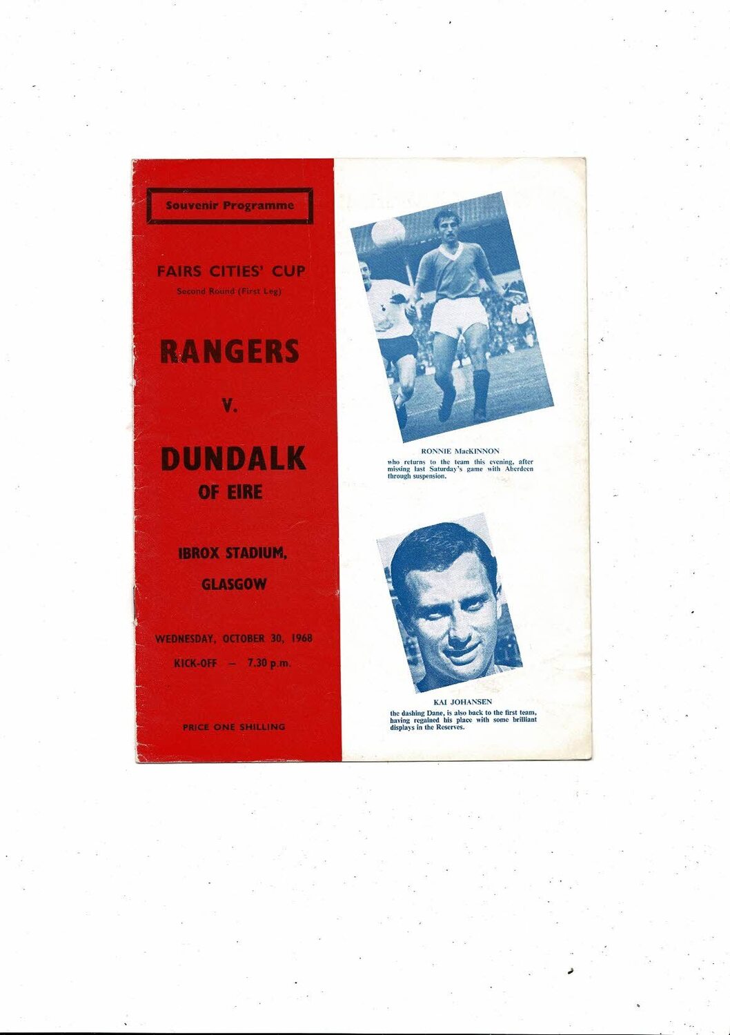 Rangers v Dundalk Fairs Cup Football Programme 1968/69