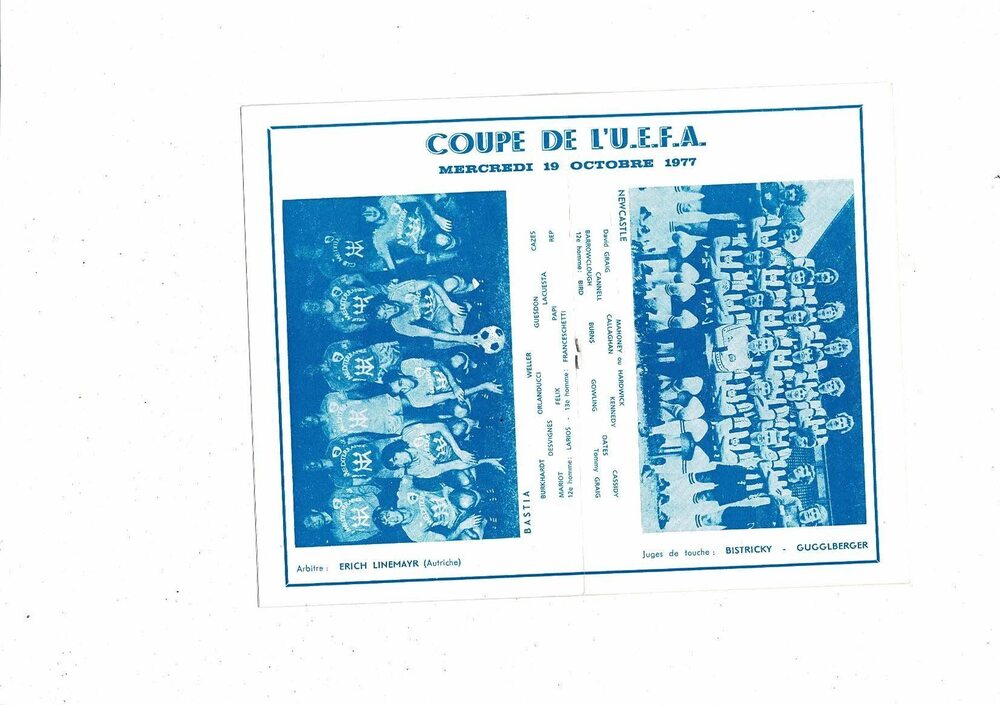 SEC Bastia v Newcastle United UEFA Cup Football Programme 1977/78
