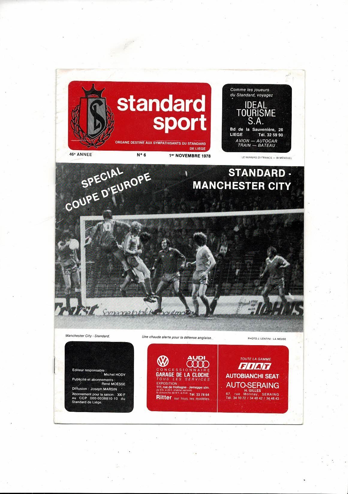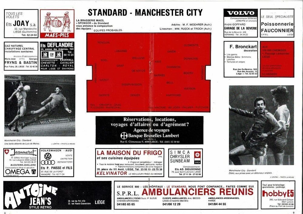 Standard Liege v Manchester City UEFA Cup Football Programme 1978/79