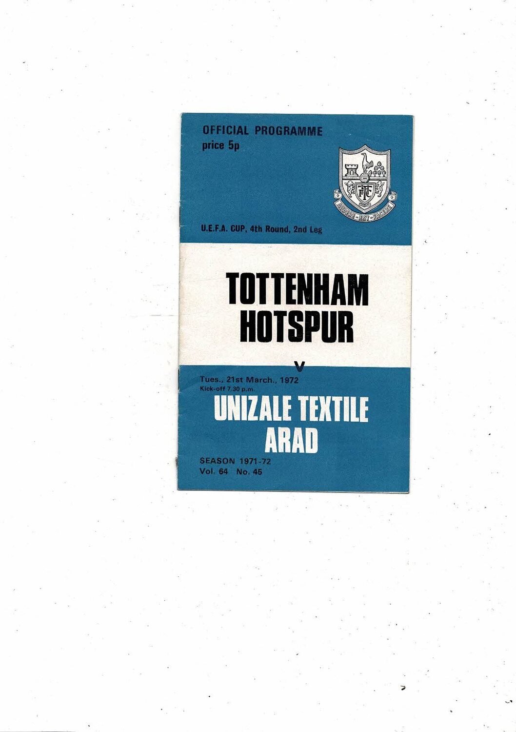 Tottenham Hotspur v Arad UEFA Cup Football Programme 1971/72