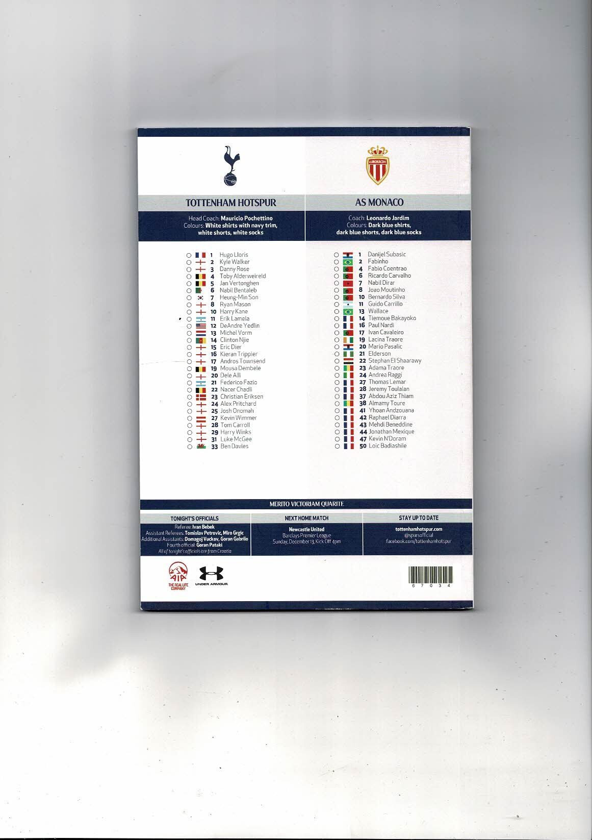 Tottenham Hotspur v AS Monaco Europa League Football Programme 2015/16