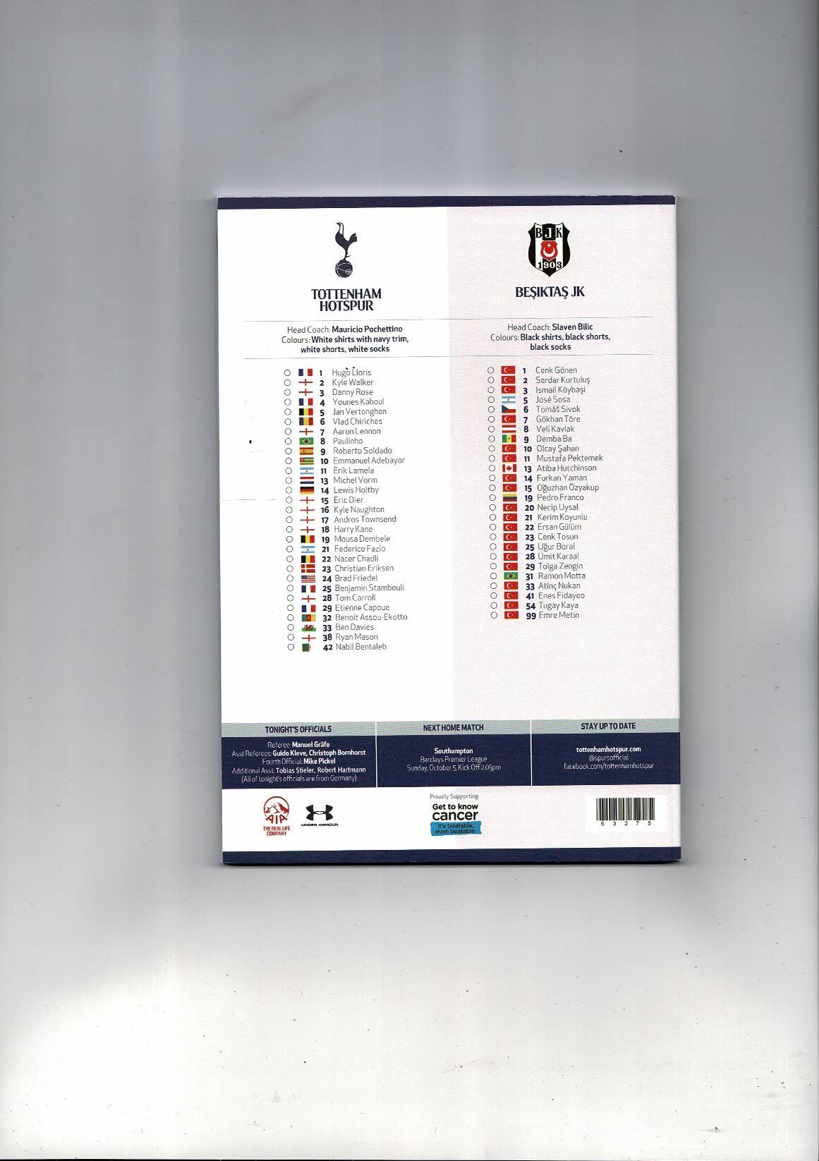 Tottenham Hotspur v Besiktas JK Europa League Football Programme 2014/15