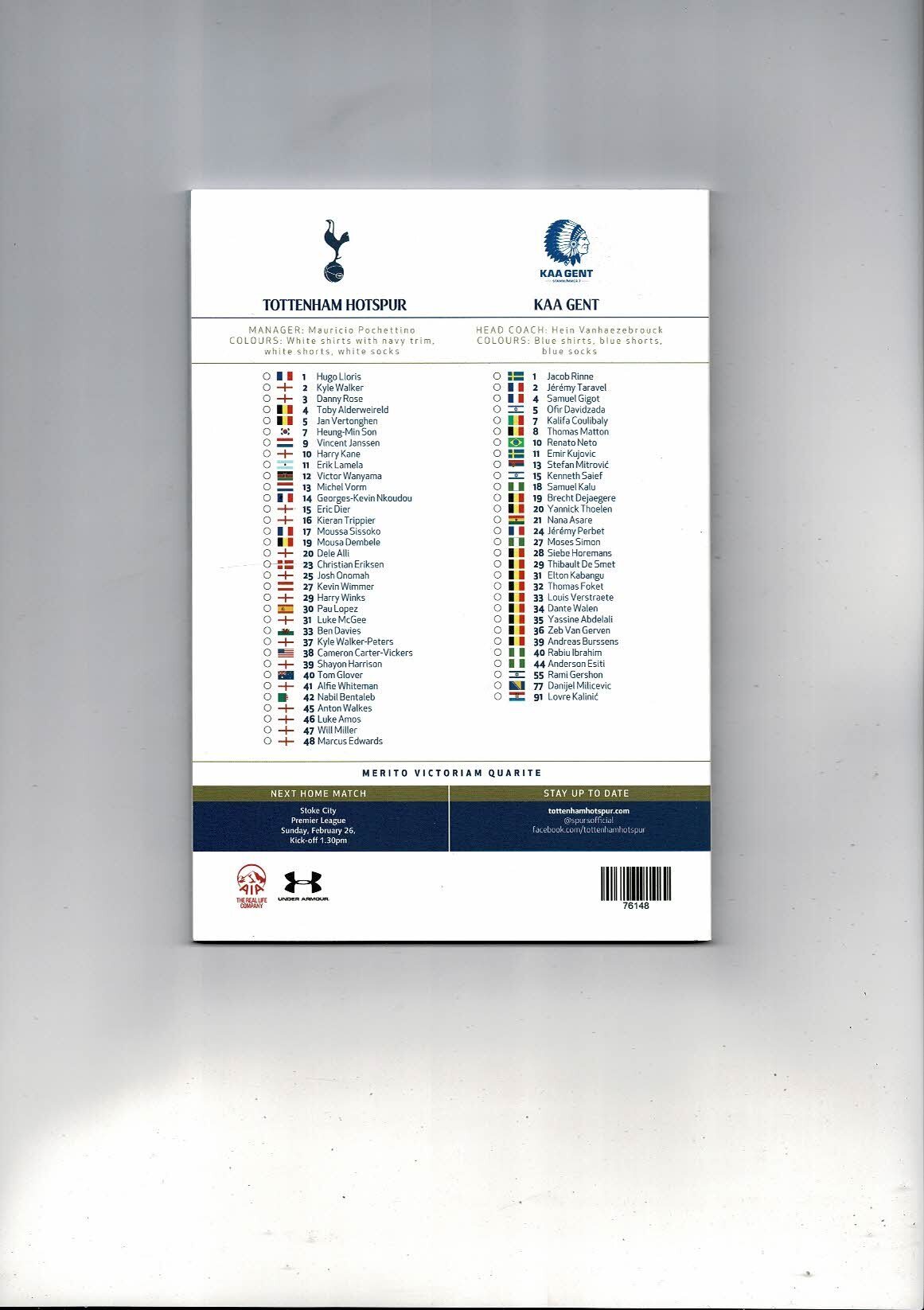Tottenham Hotspur v KAA Gent Europa League Football Programme 2015/16