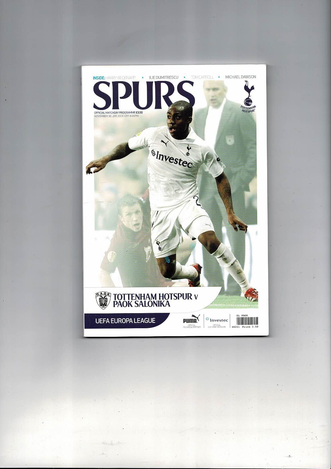 Tottenham Hotspur v Paok Salonika Europa League Football Programme 2011/12